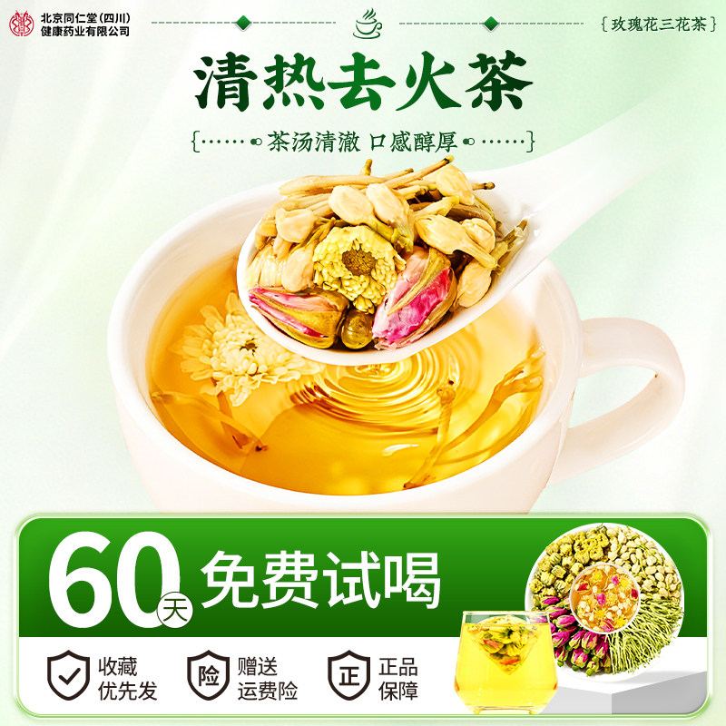 菊花茶北京同仁堂金银花茉莉上火清热解三花茶去肝火祛痘毒养生茶