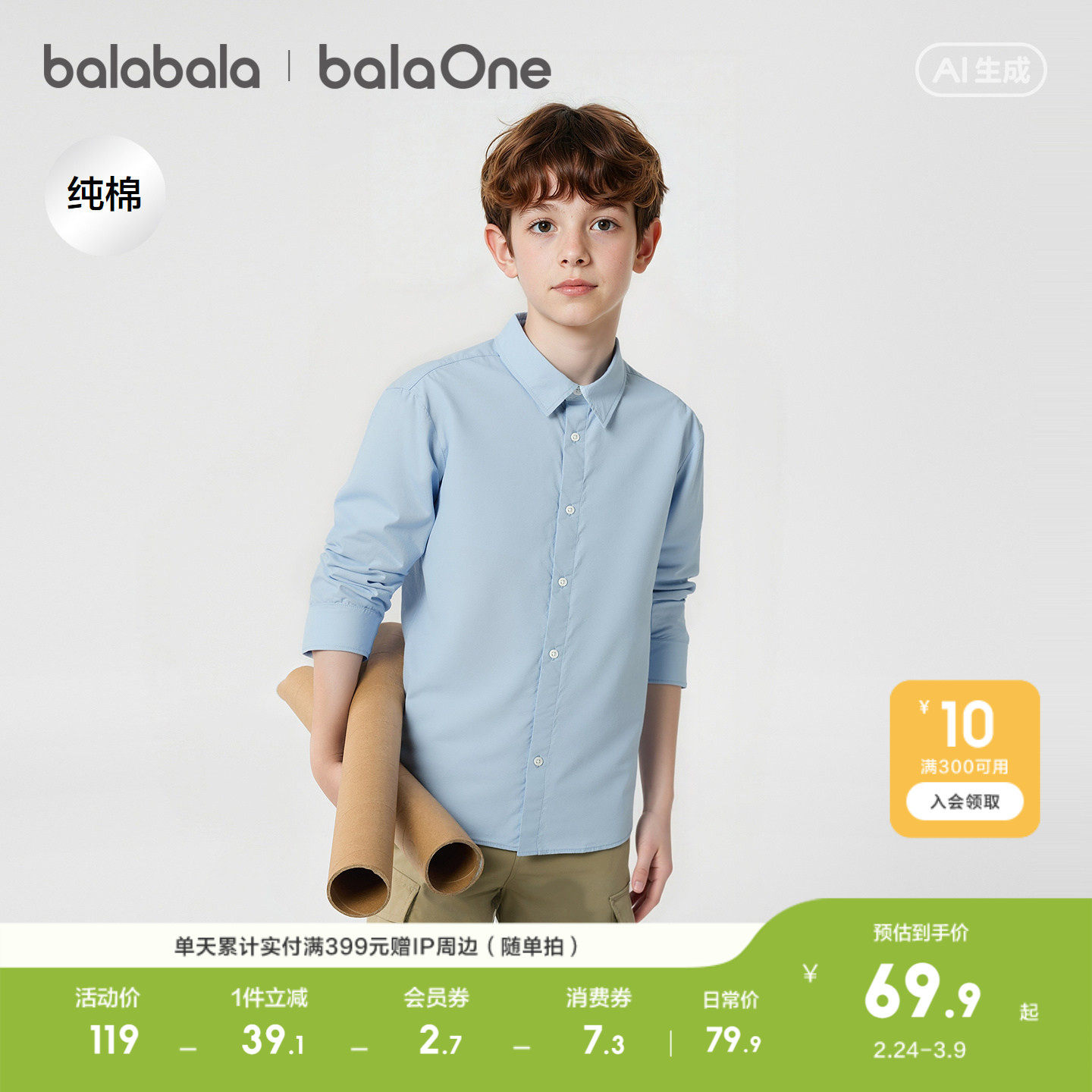 巴拉巴拉童装男童长袖衬衫宝宝2026新款春装纯棉亲肤纯色衬衣时尚