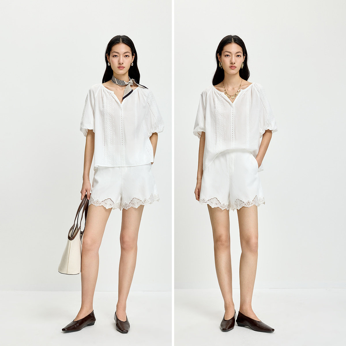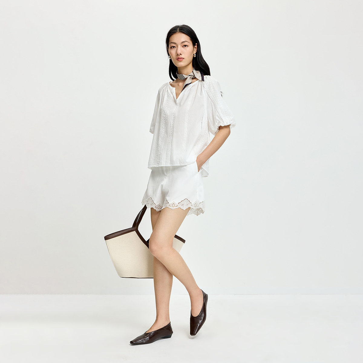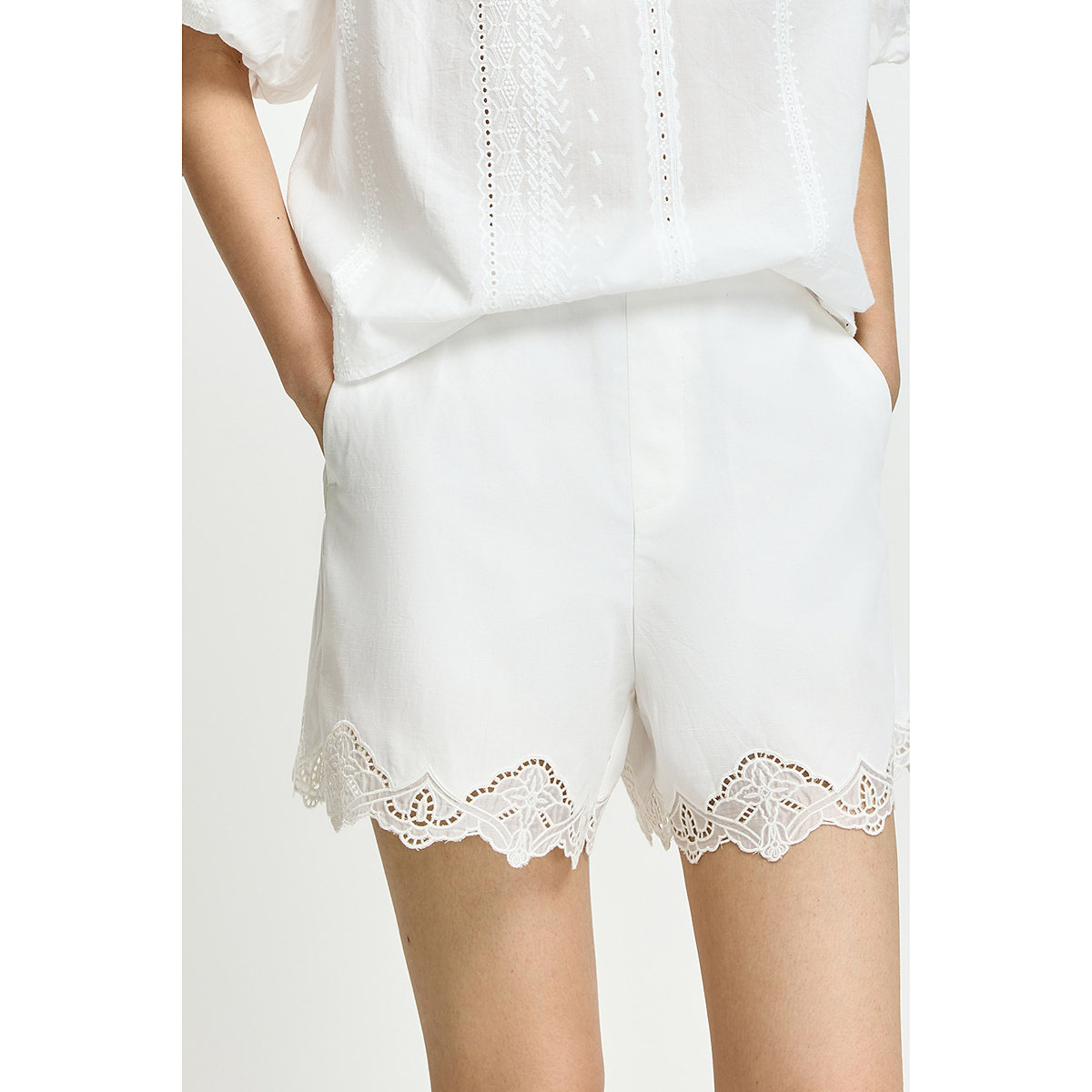 LILY2026夏新款女装莱赛尔亚麻混纺简约法式休闲通勤白色绣花短裤