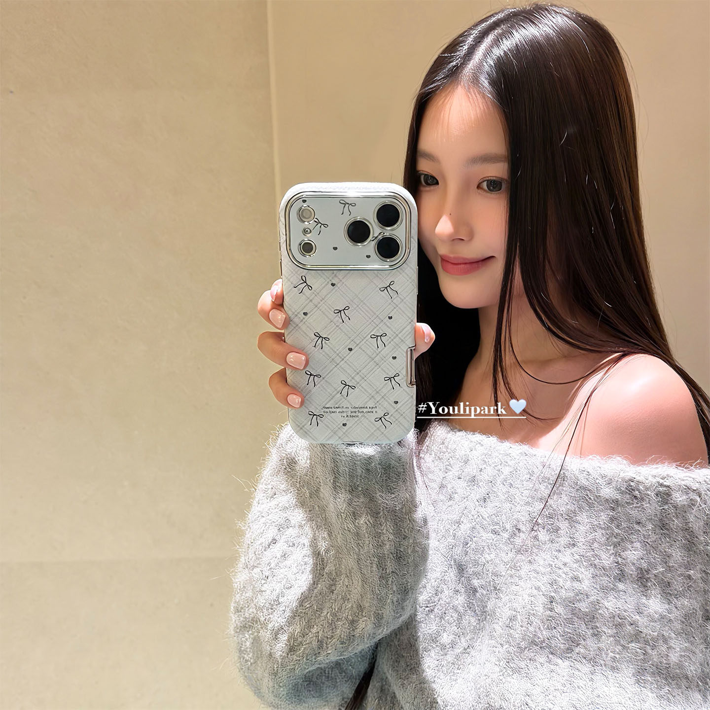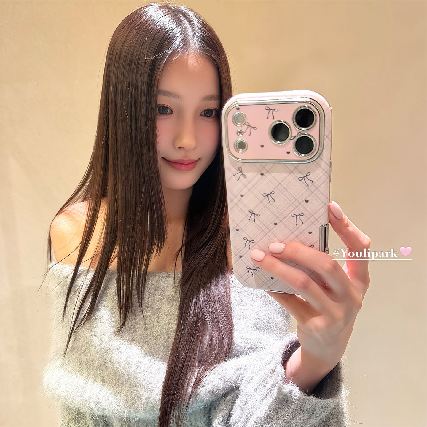 由里公园ins韩系少女格纹爱心满屏蝴蝶结17适用17pro苹果17ProMax手机壳iPhone16全包14新款16Promax保护套13