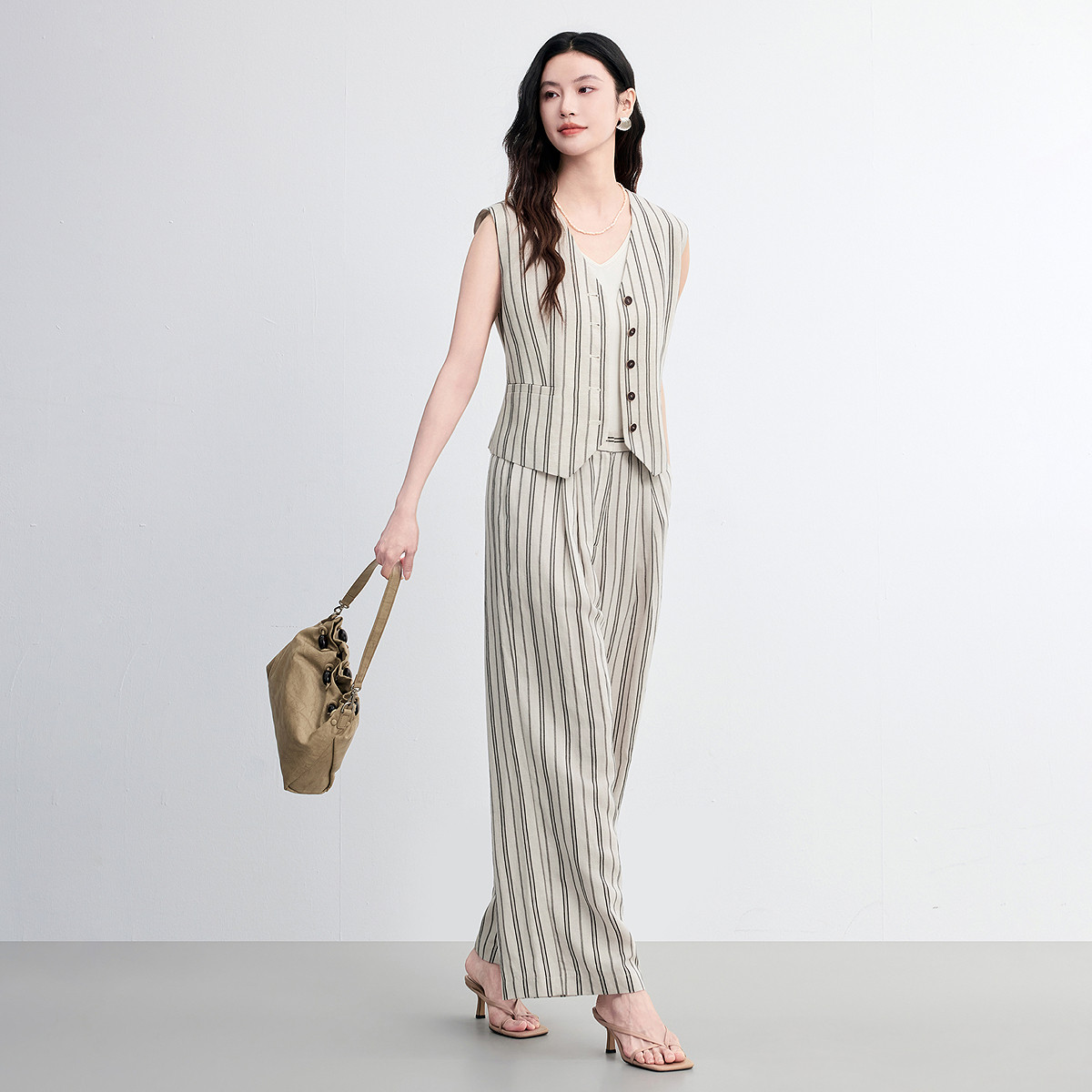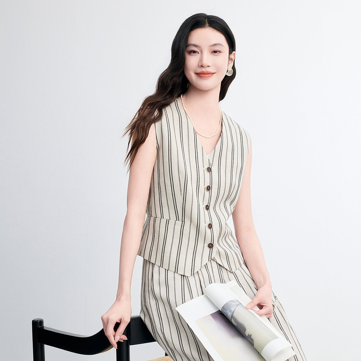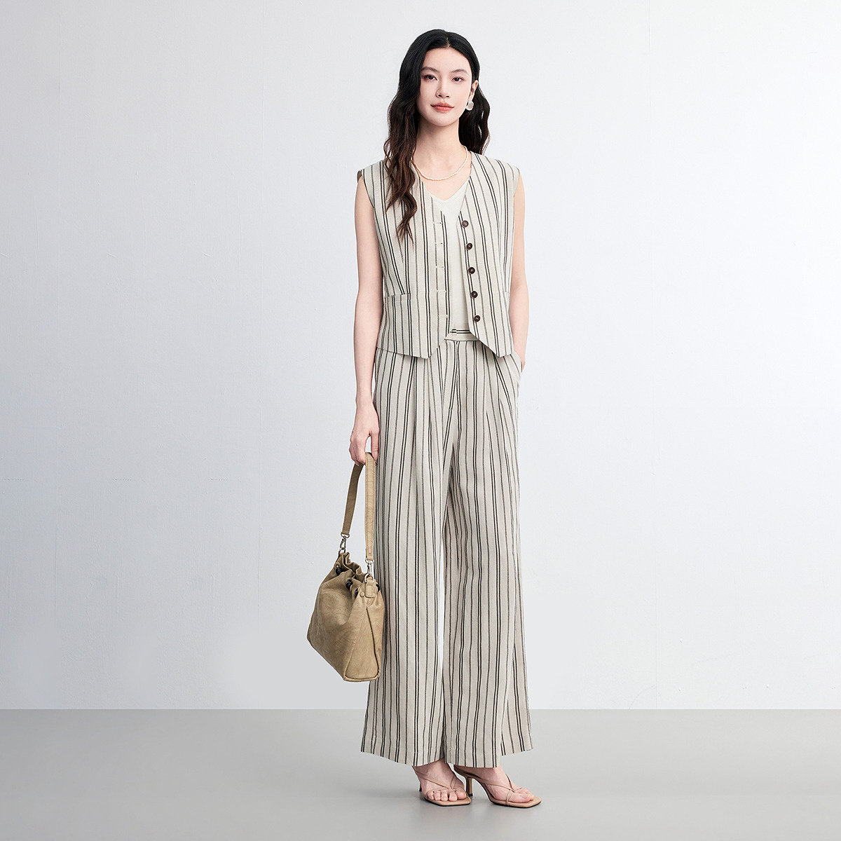 FINITY菲妮迪亚麻时尚套装2026年春季新款简约条纹气质两件套女装