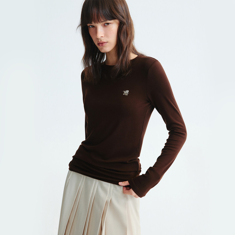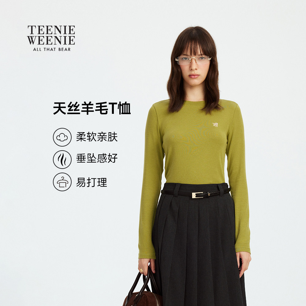【天丝绵羊毛】TeenieWeenie小熊女装T恤2025秋刺绣圆领长袖上衣