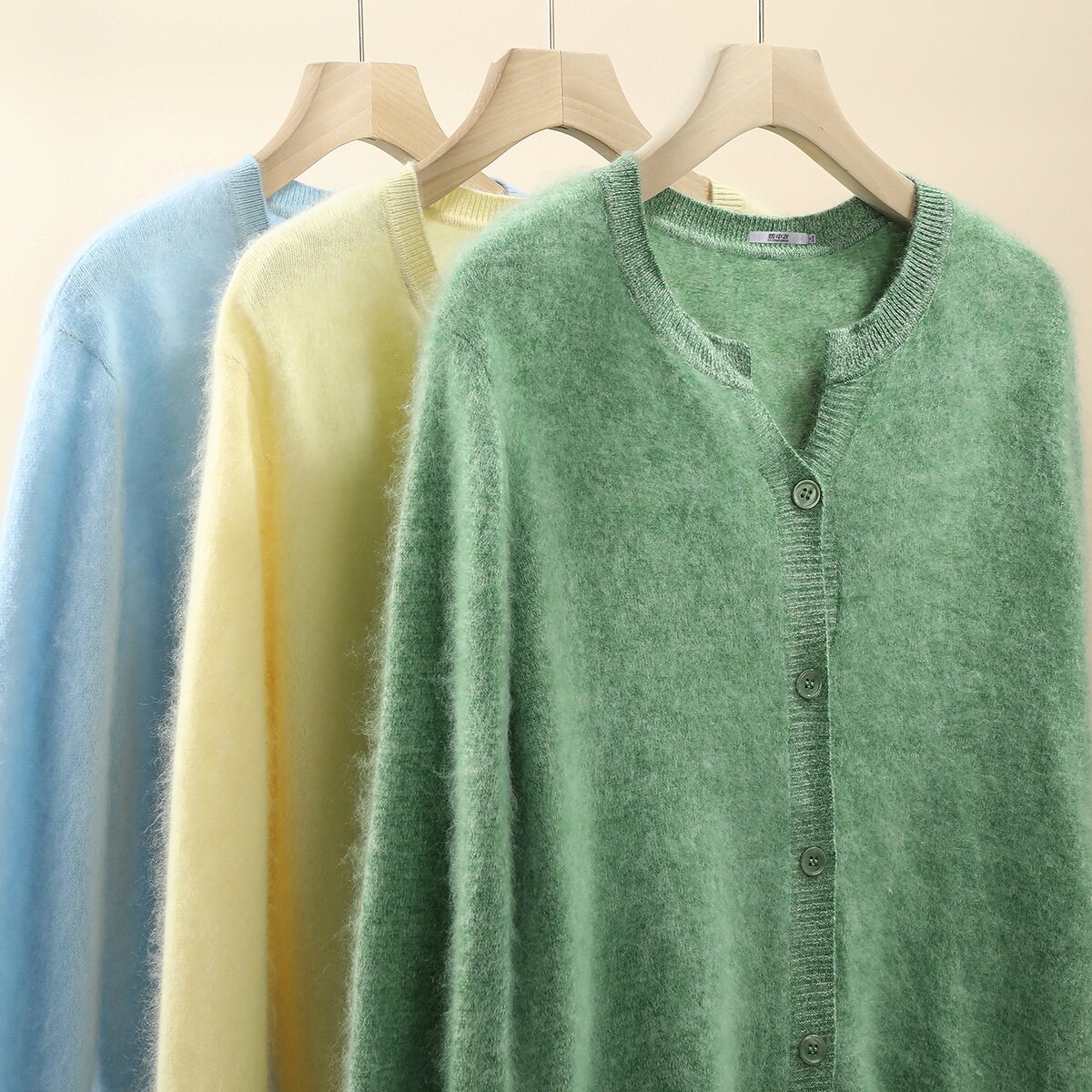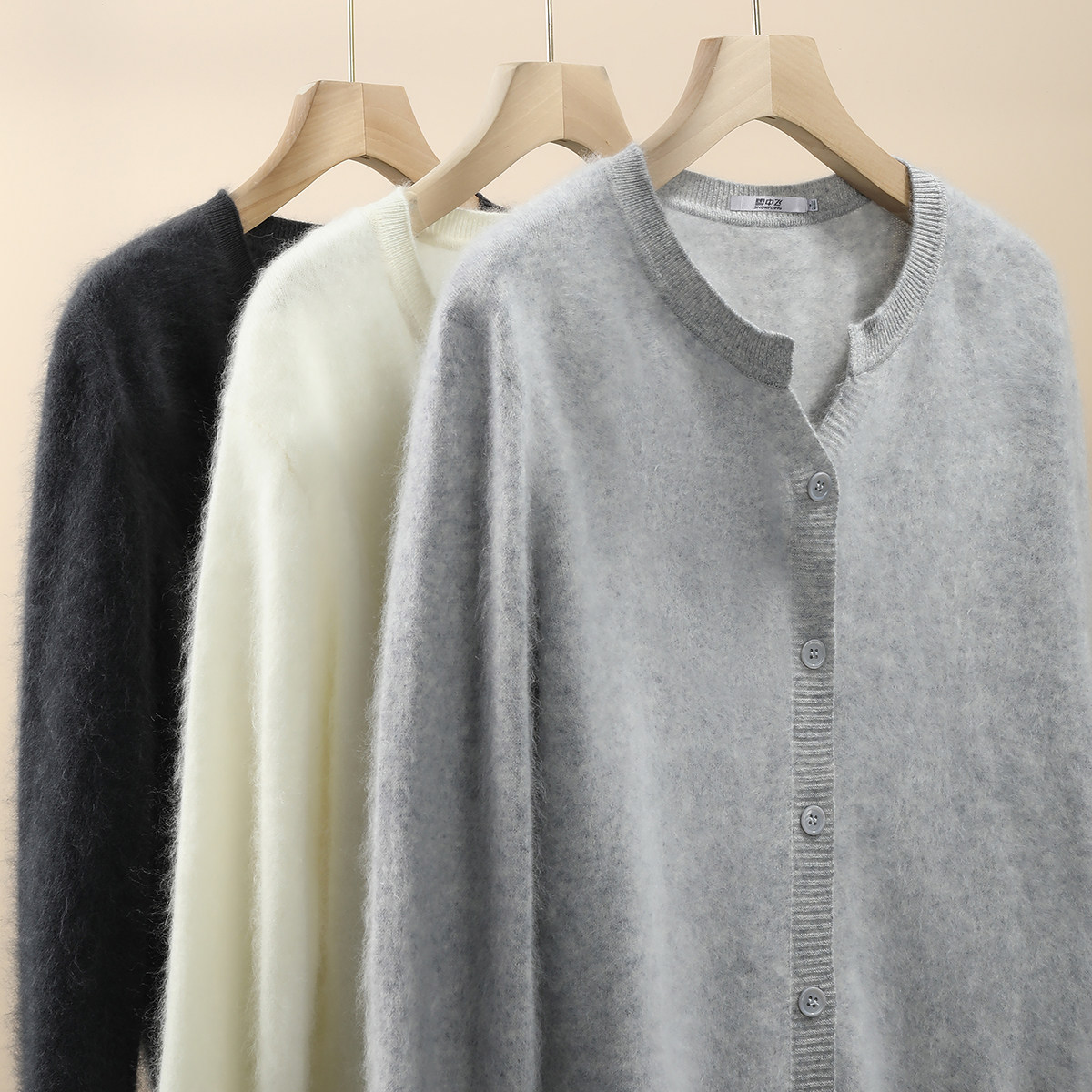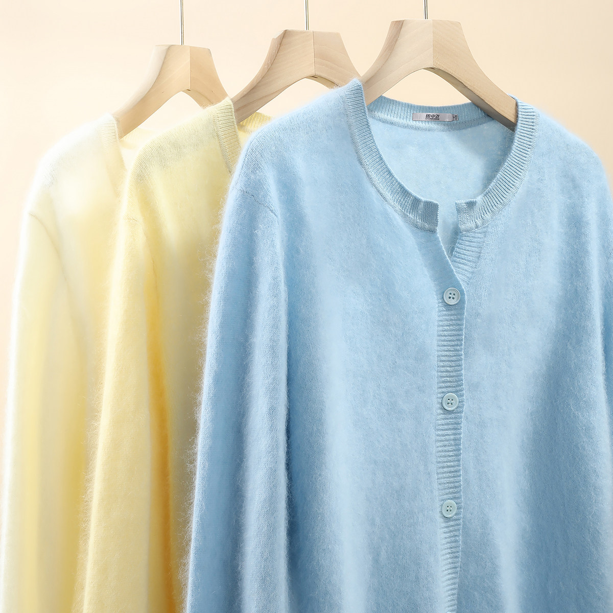 2026新款女装宽松针织开衫纯棉春秋外套纯色百搭圆领毛衣针织衫潮