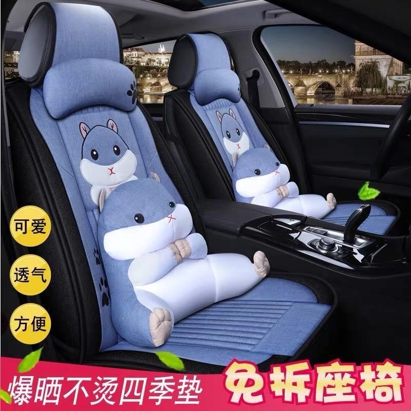 汽车坐垫四季通用亚麻布艺座套卡通全包围小车座垫夏季专用座椅套