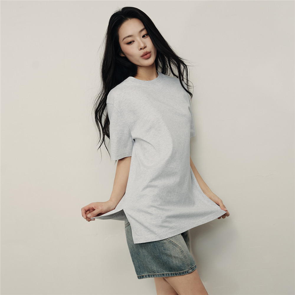 纯棉面料亲肤舒适 中长款开叉遮肉时尚