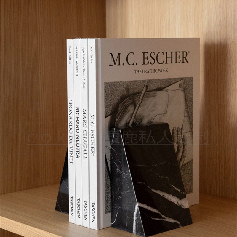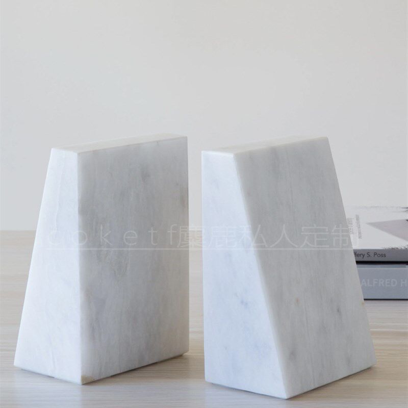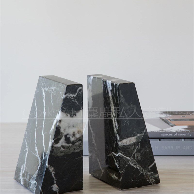 天然大理石玉石书架书立创意高级感办H公室桌面书挡设计师软装摆