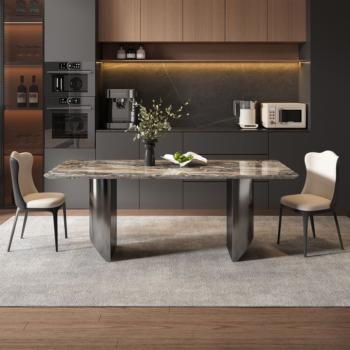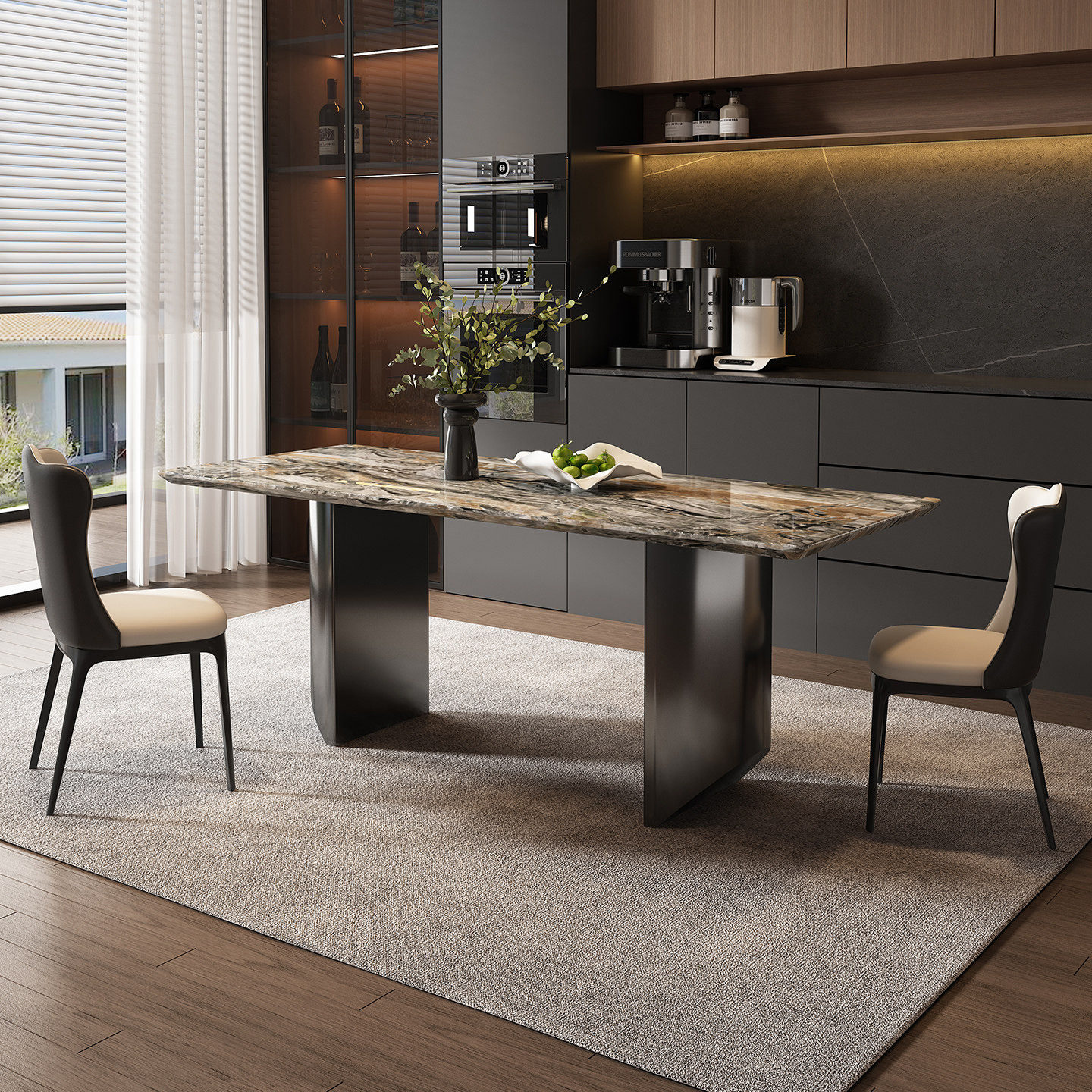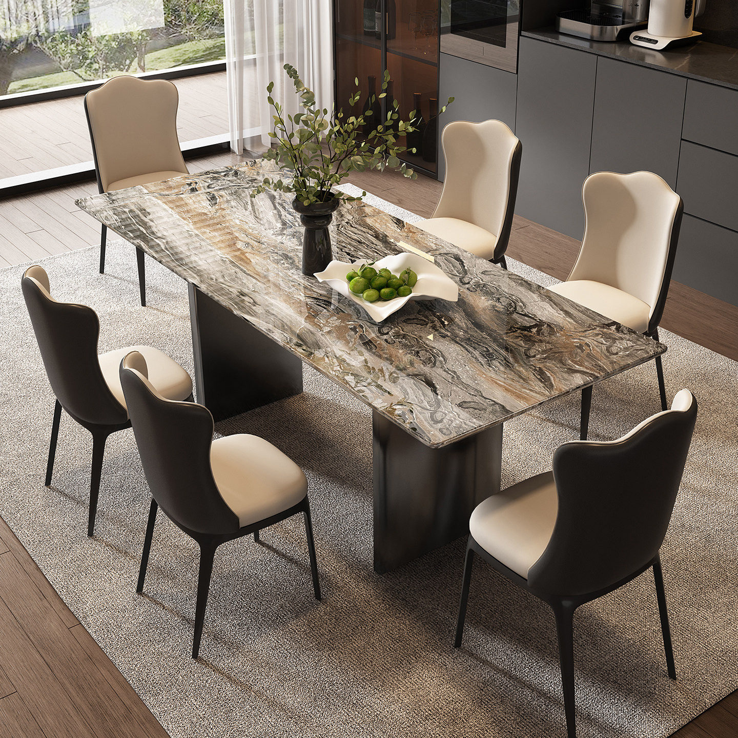 威尼斯棕奢石长方形餐桌意式轻奢高级高端2026新款天然大理石餐桌