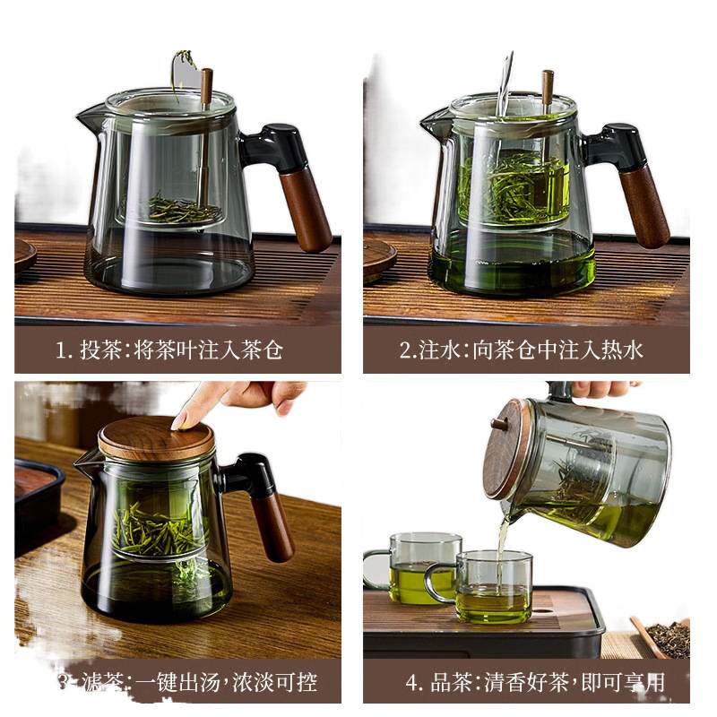 新款飘逸杯家用办公耐高温玻璃泡茶壶按压一键茶水分离杯茶具套装