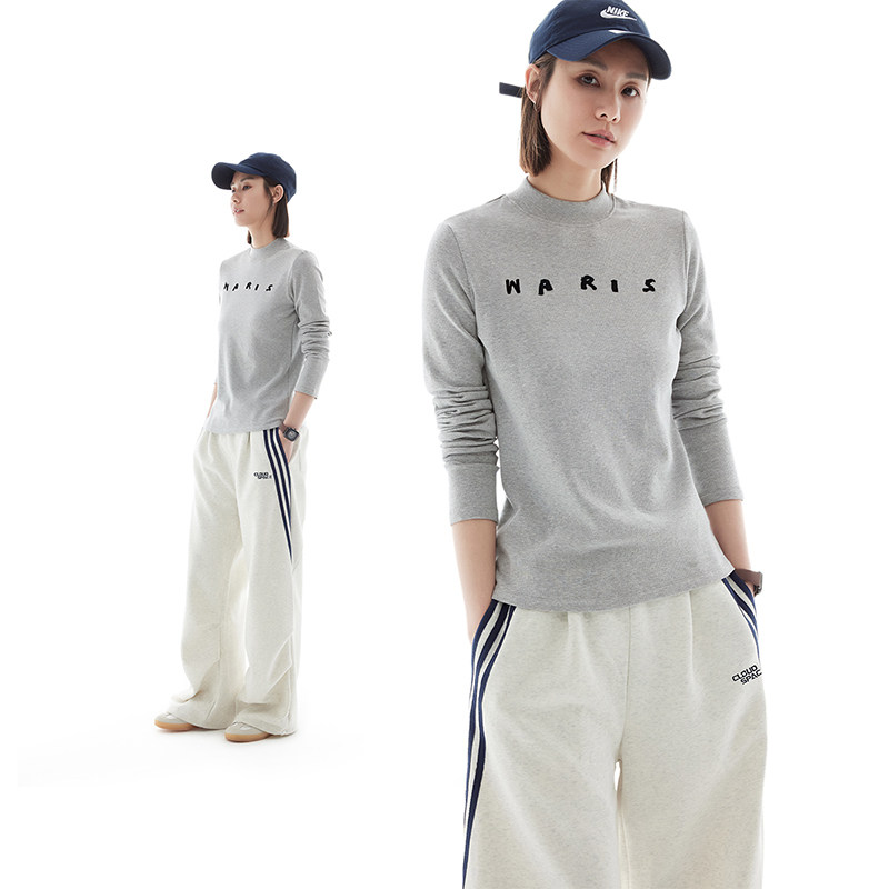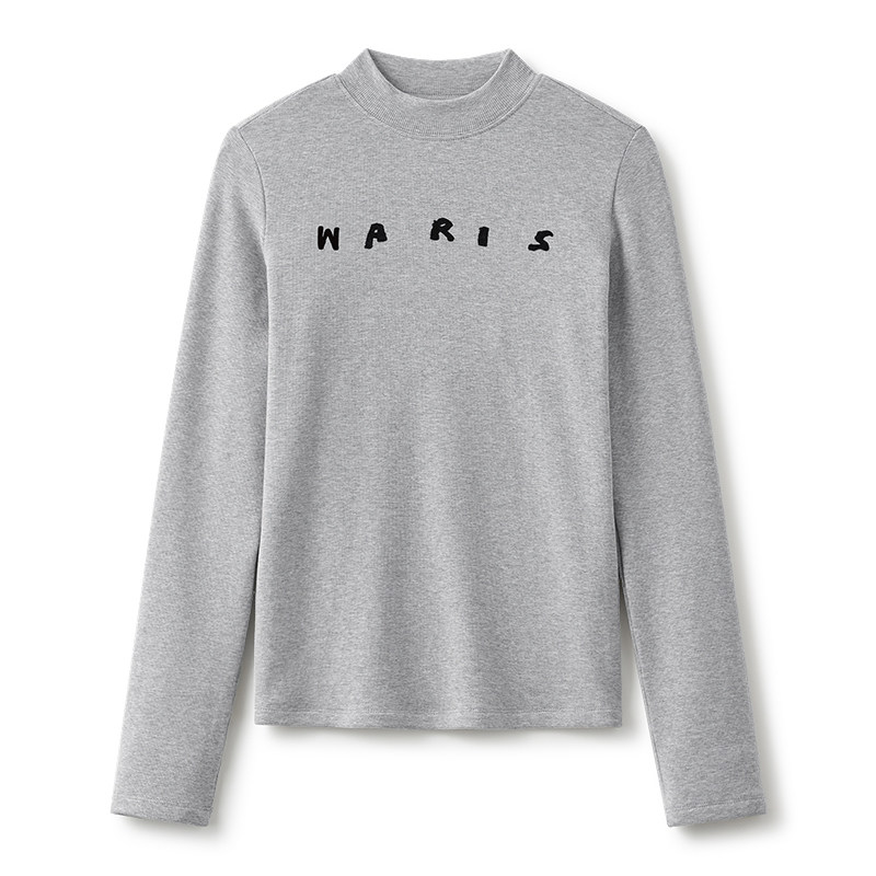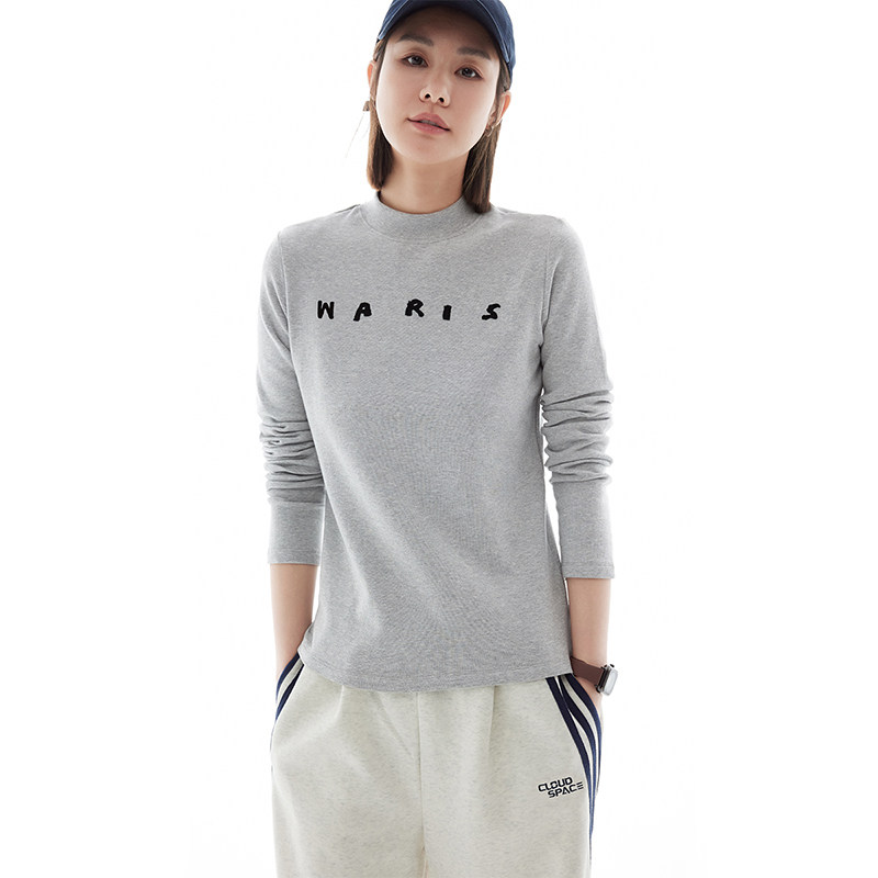 云上生活【雾海T】植绒字母半高领显瘦长袖女T恤春季新款上衣