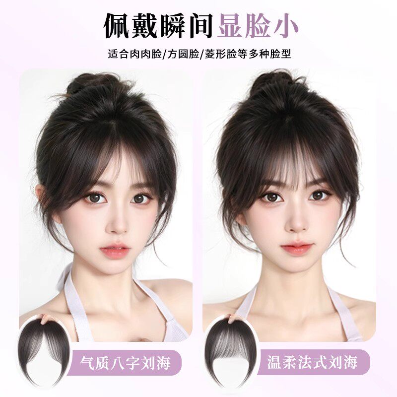 刘海假发女片头顶自然前额真发八字空气刘海无痕轻薄款法式假刘海