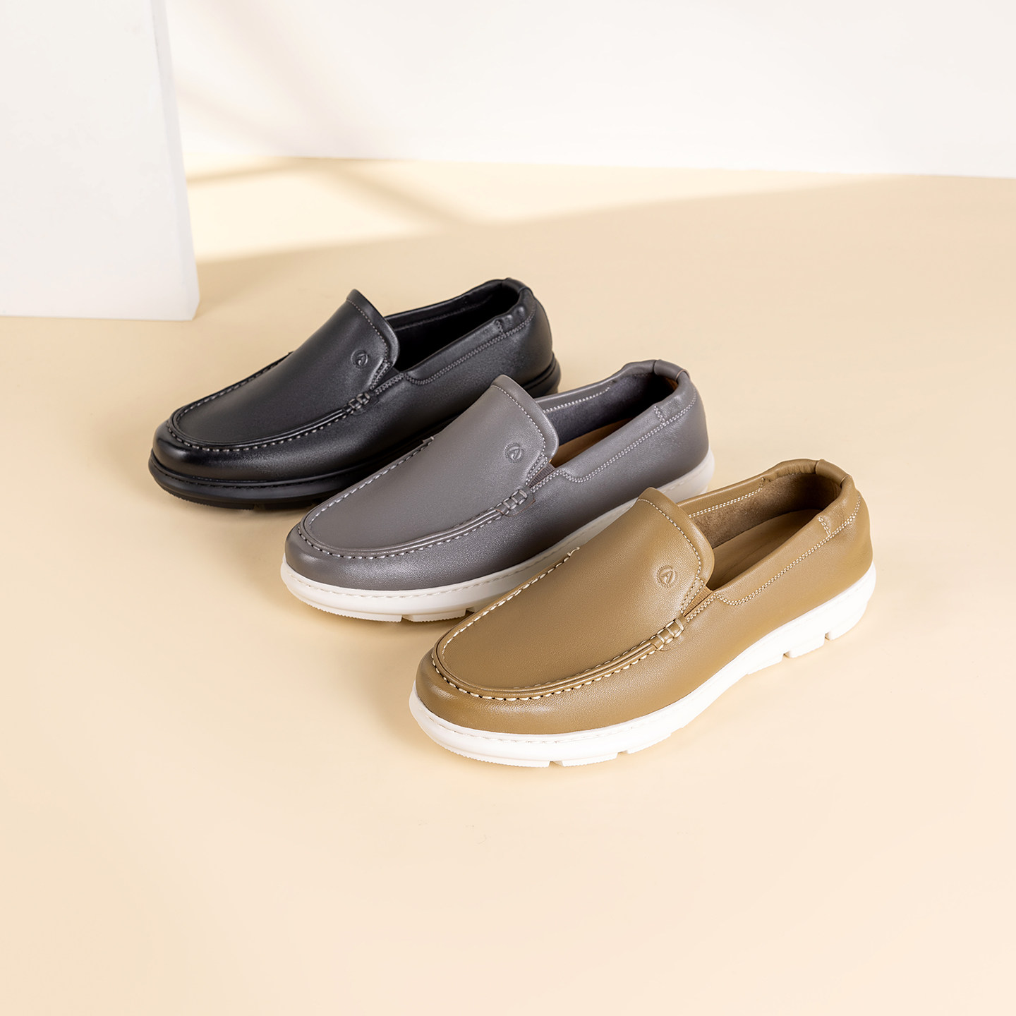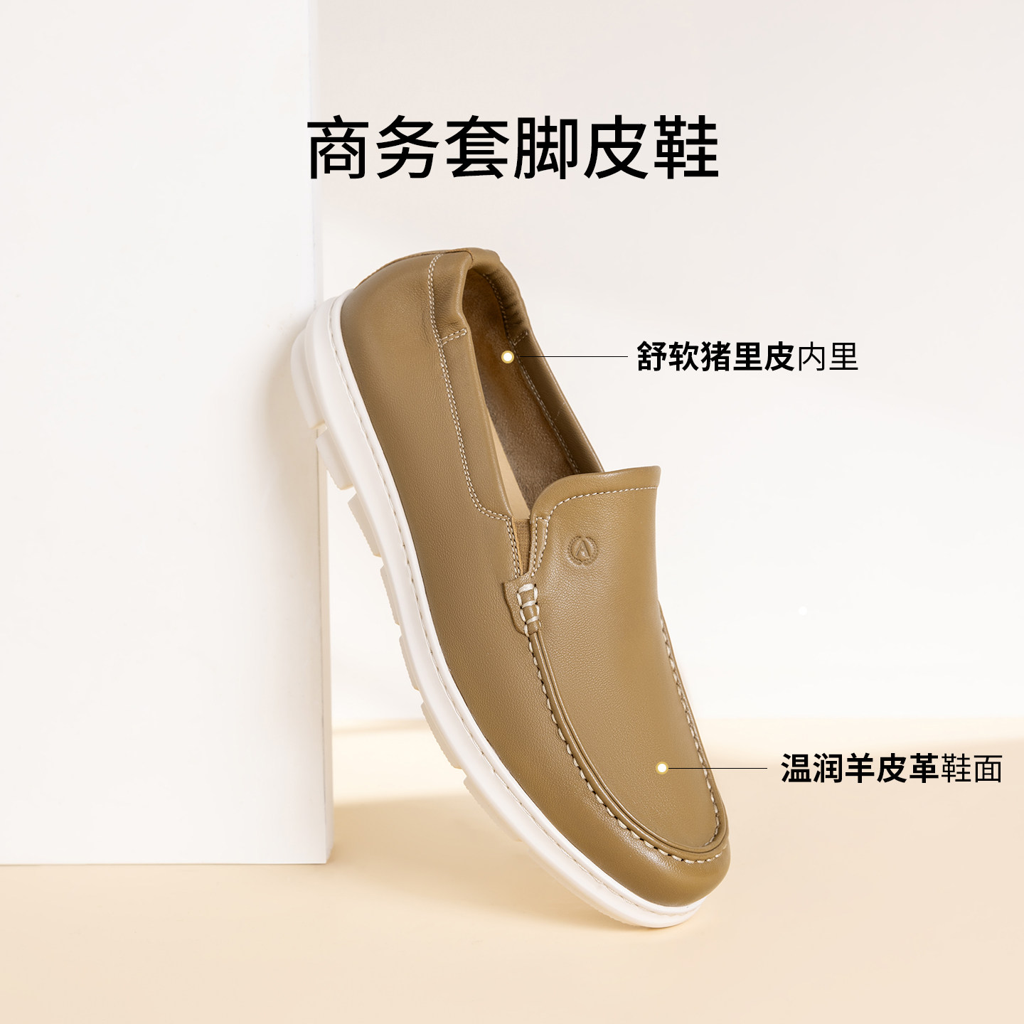 奥康春秋季商务休闲皮鞋男真皮软底乐福鞋舒适一脚蹬套脚爸爸鞋