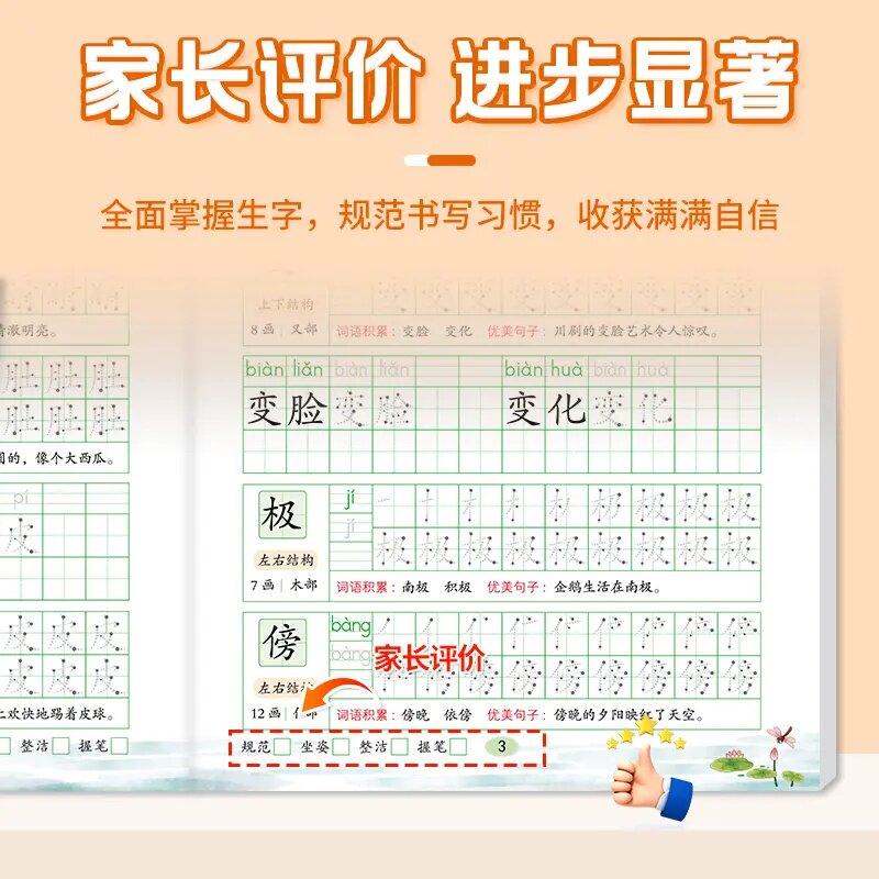 初中生七八九年级上下册语文同步考卷面快书写训练习字帖楷书硬笔