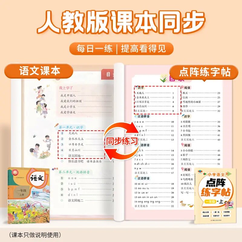 新人教版小学语文一二年级同步生字练字帖上下册一类字点阵控笔