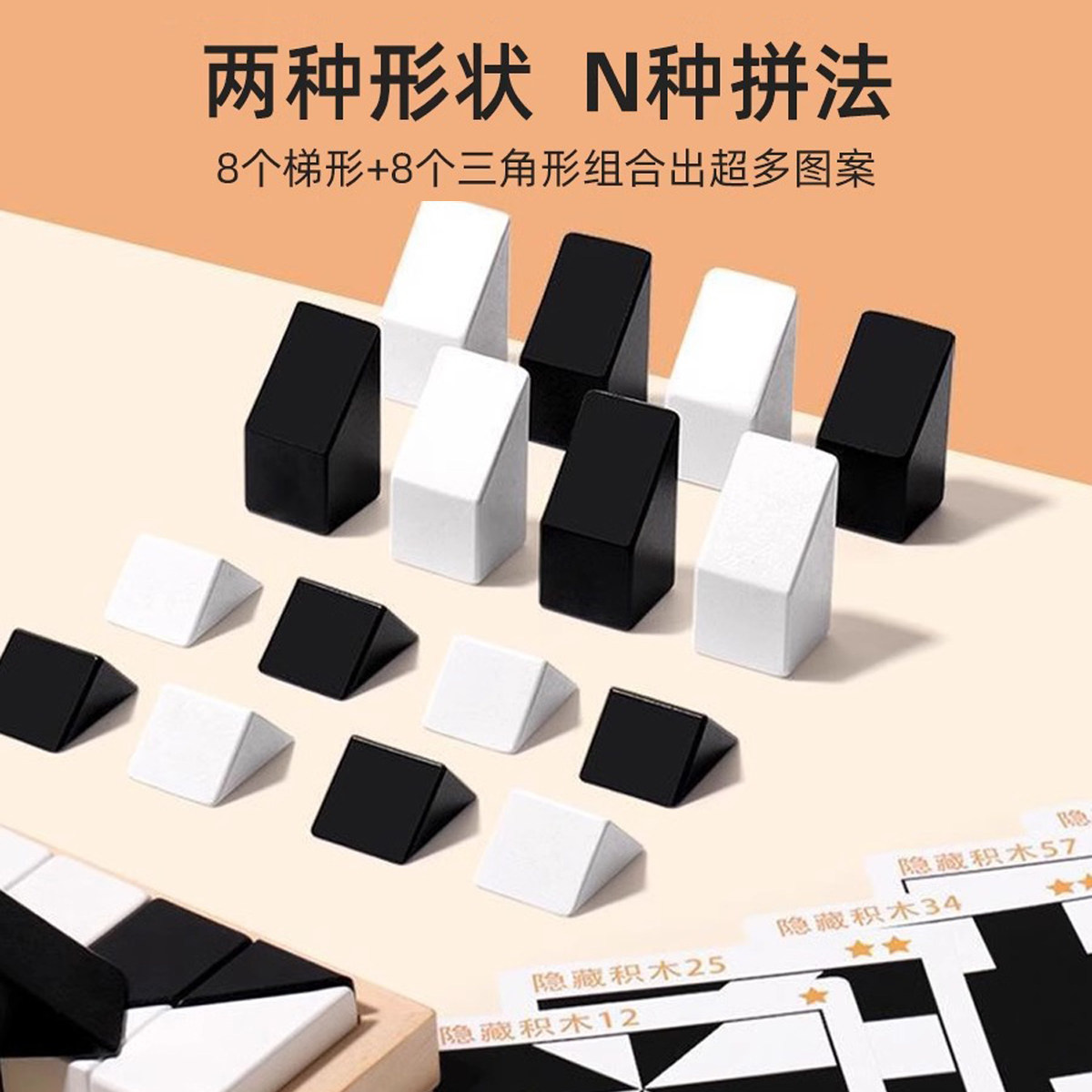 益智隐藏积木拼图玩具儿童思维能力亲子互动桌面游戏双人认知铁盒