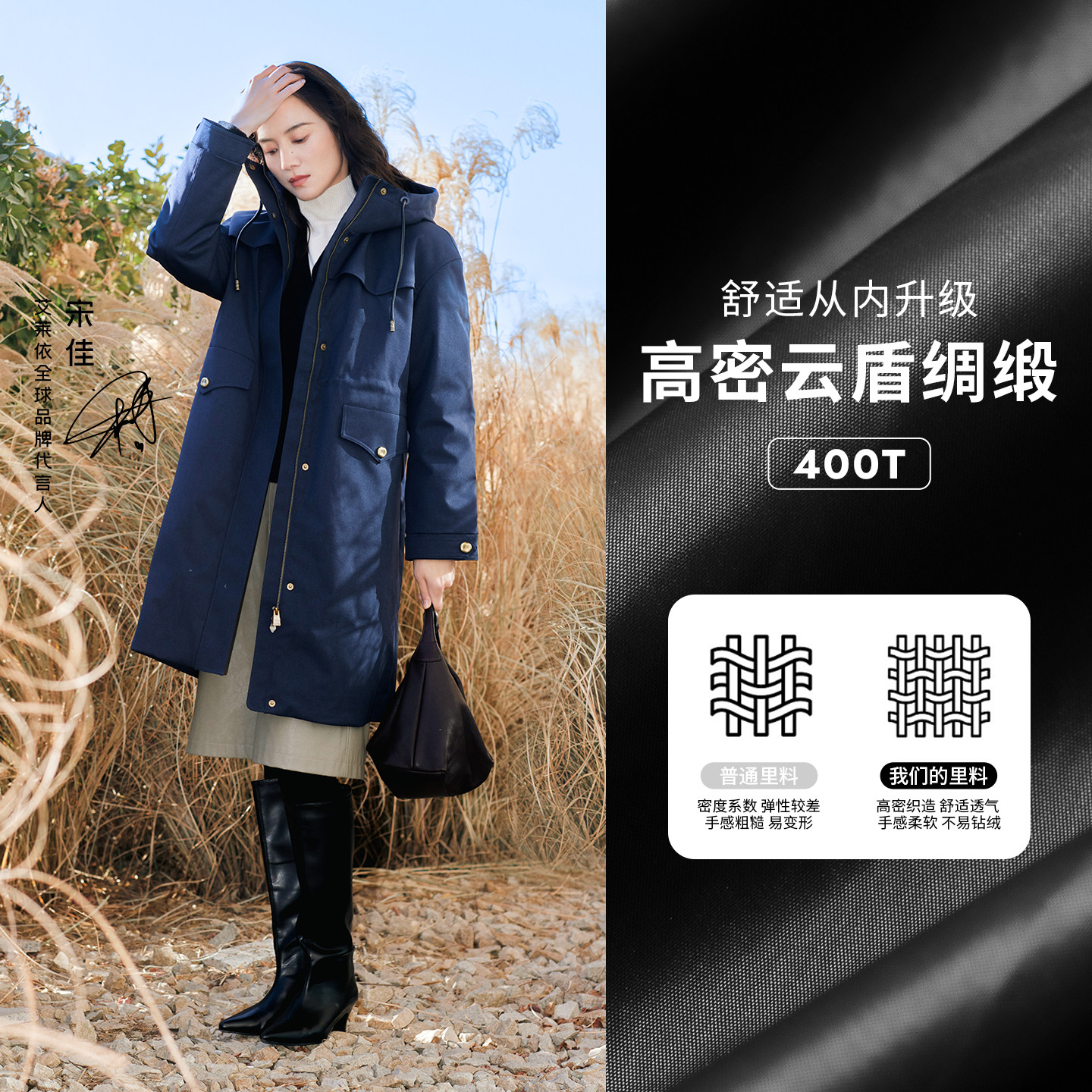 【宋佳同款】艾莱依时尚鹅绒服女秋冬新款摩登巴恩风长款工装外套