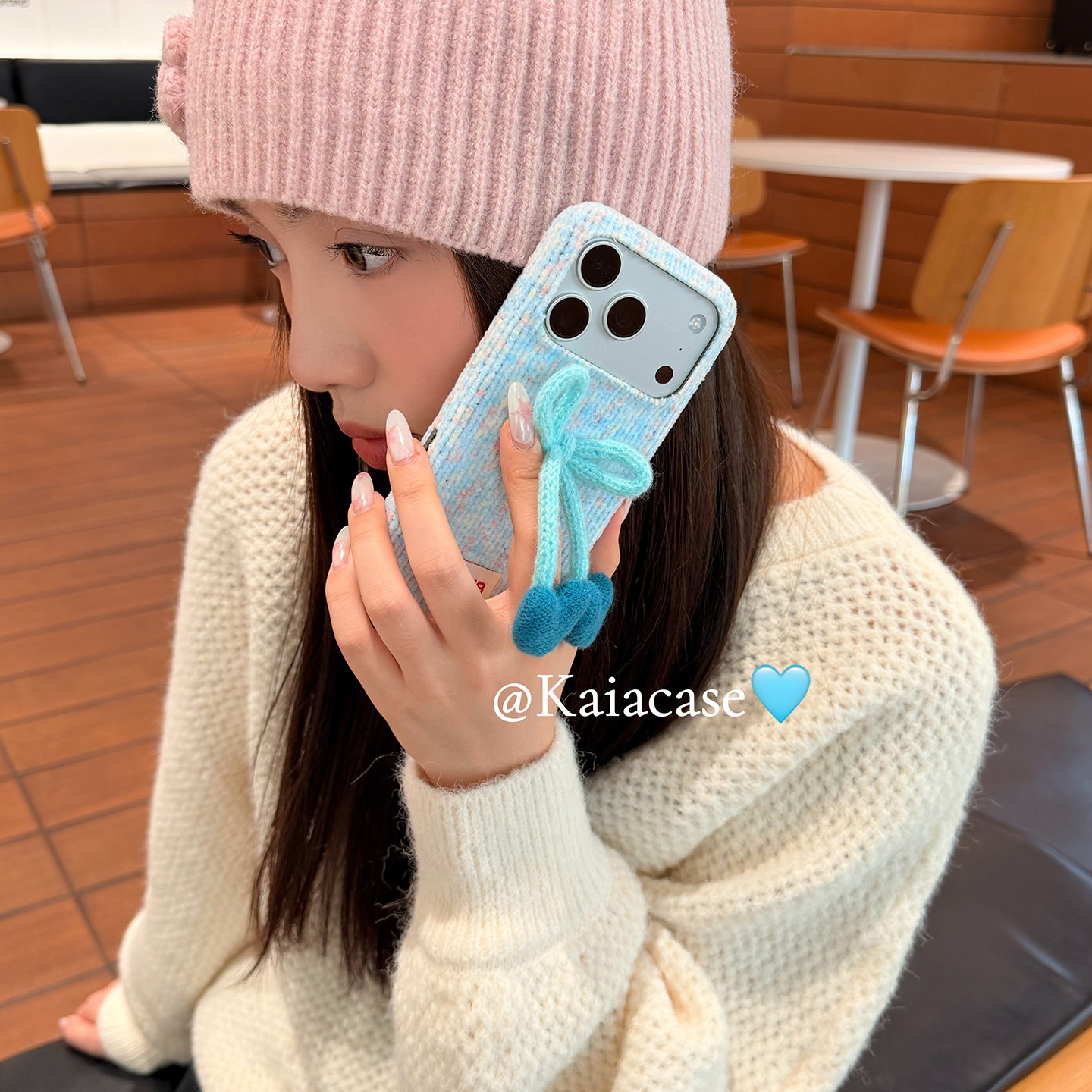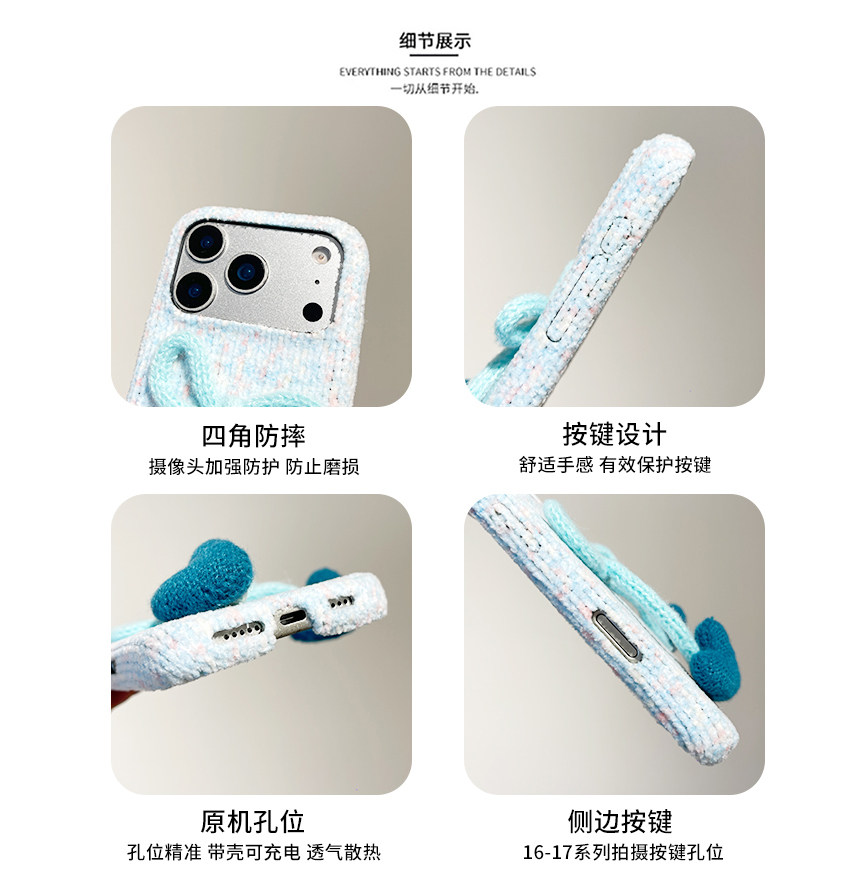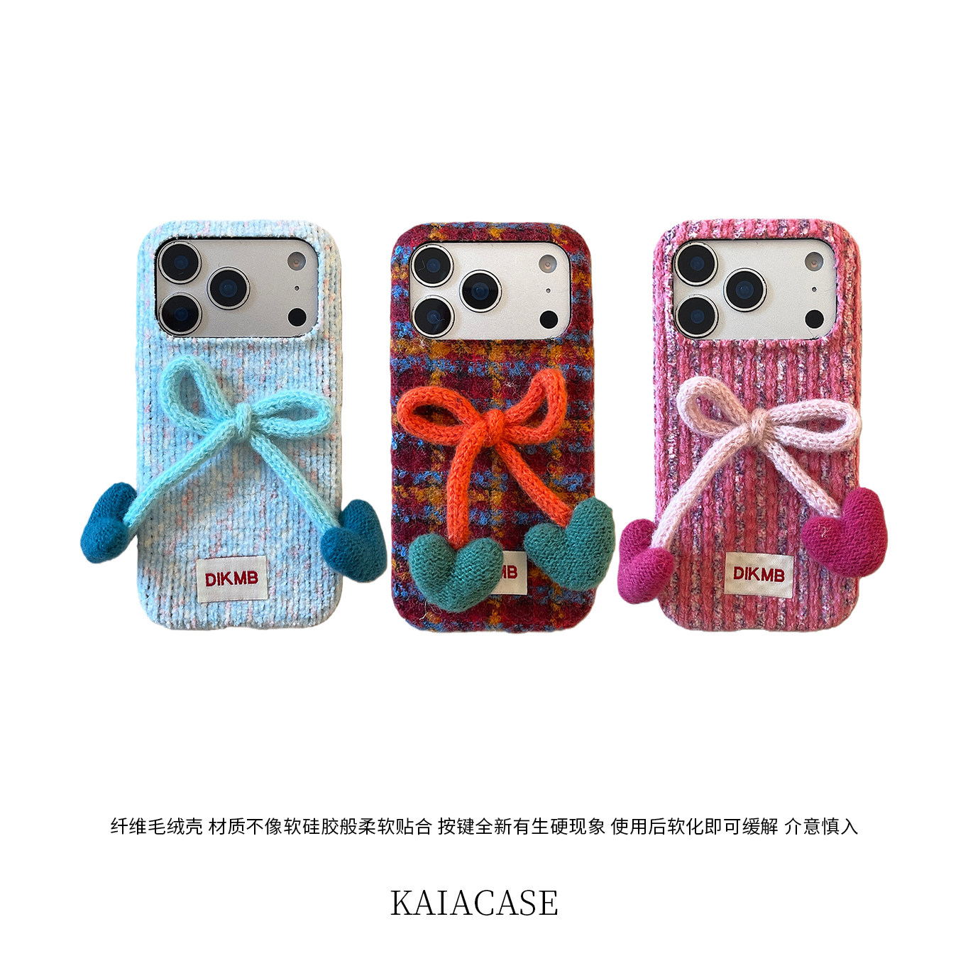 kaia 秋冬格纹绒布爱心蝴蝶结标签适用苹果17promax手机壳iphone16pro新款13女14pro创意15pro全包防摔手机套