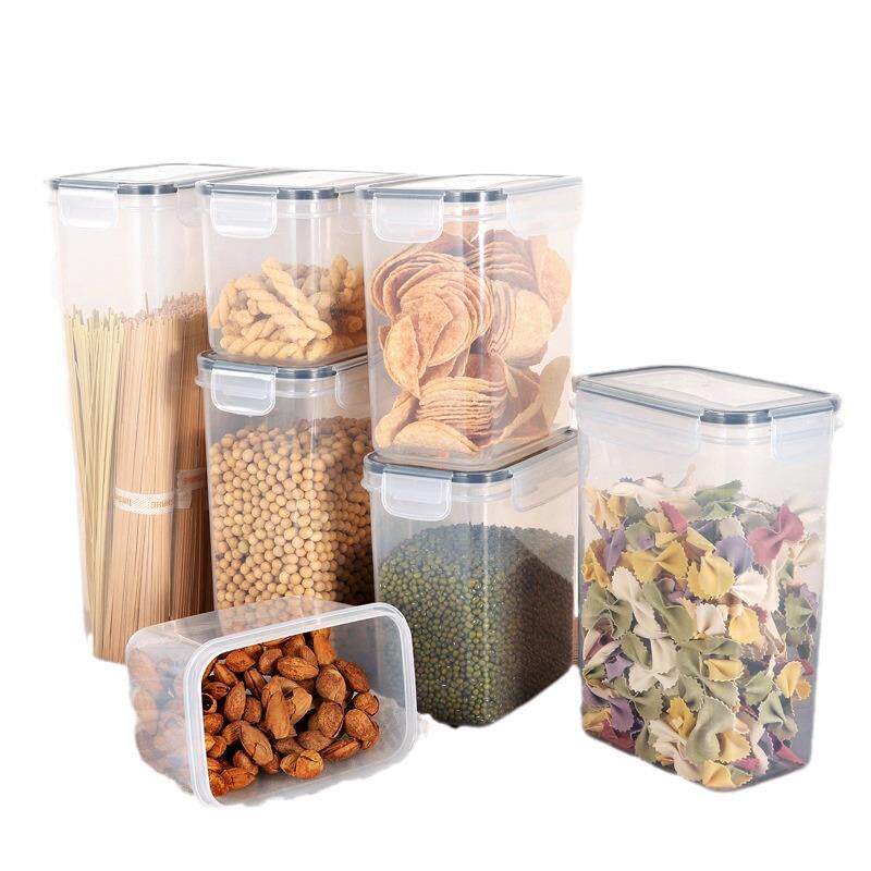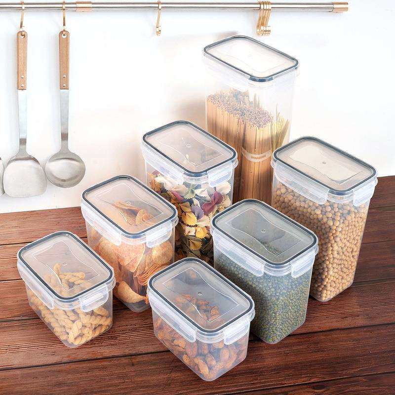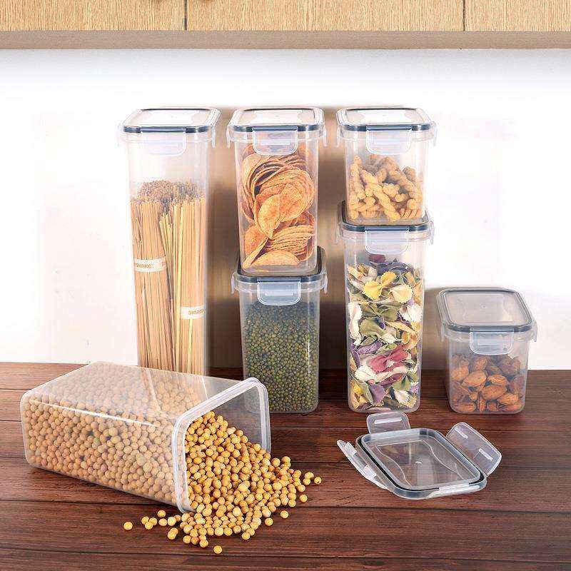 现货五谷杂粮储物罐PP收纳保鲜盒塑料透明密封罐厨房用品14件分装