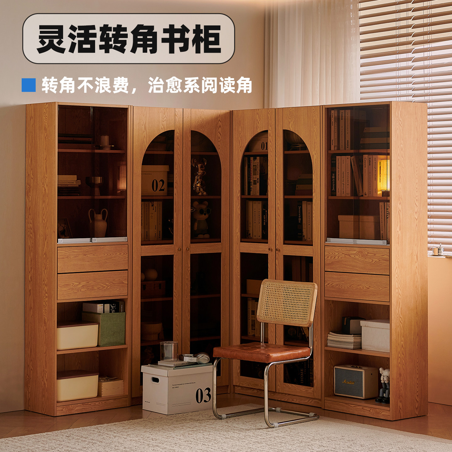 木兜家具满山书柜客厅一体整墙落地卡座书架去客厅化书房满墙书柜