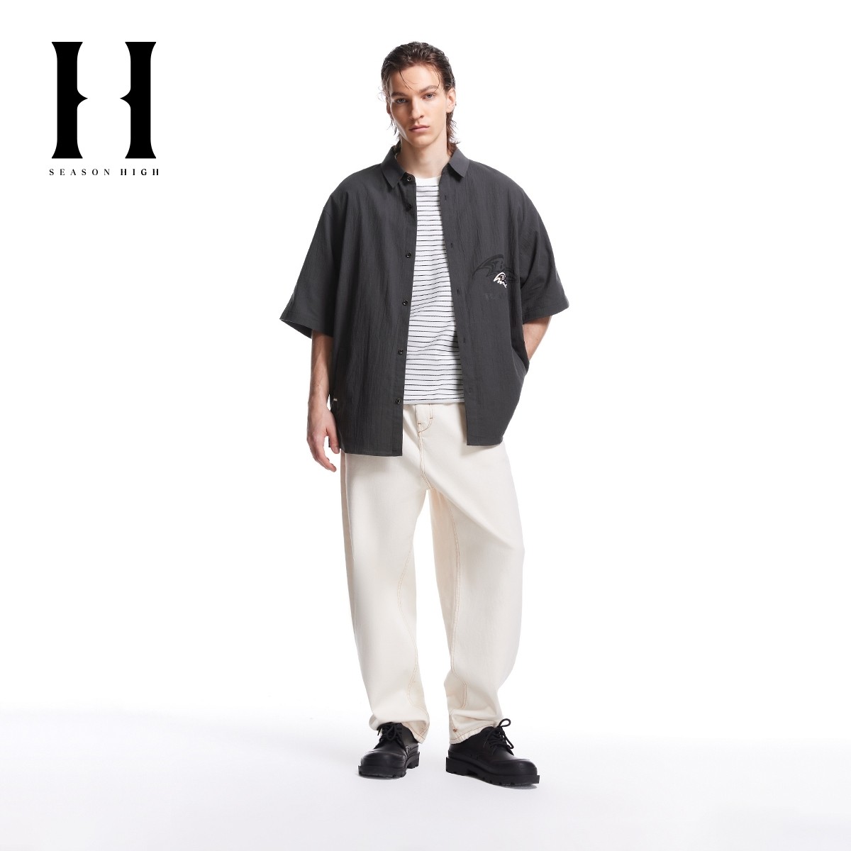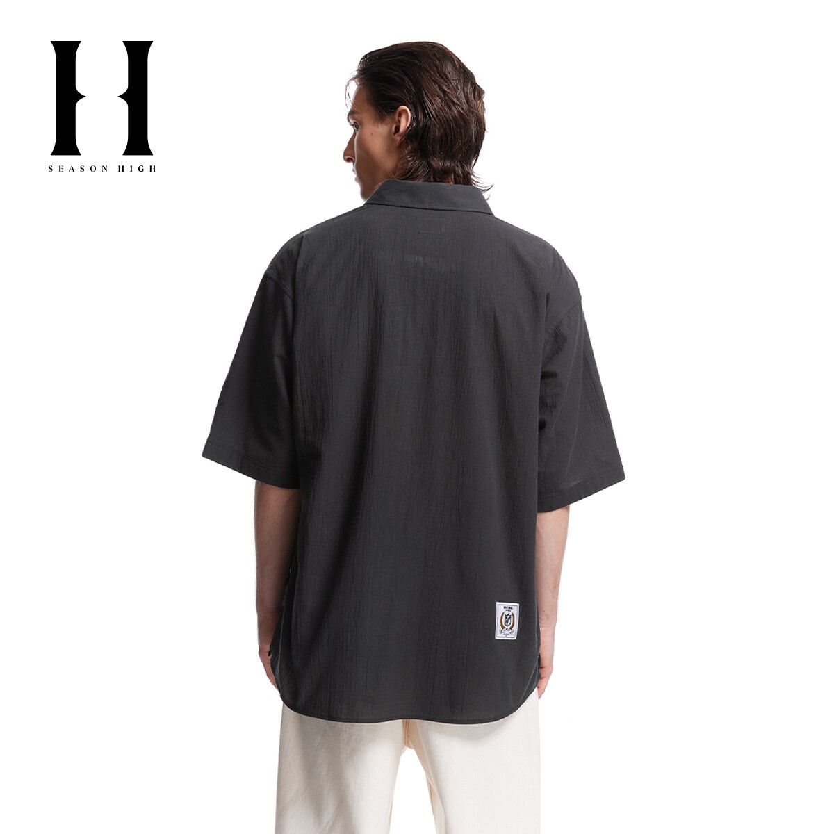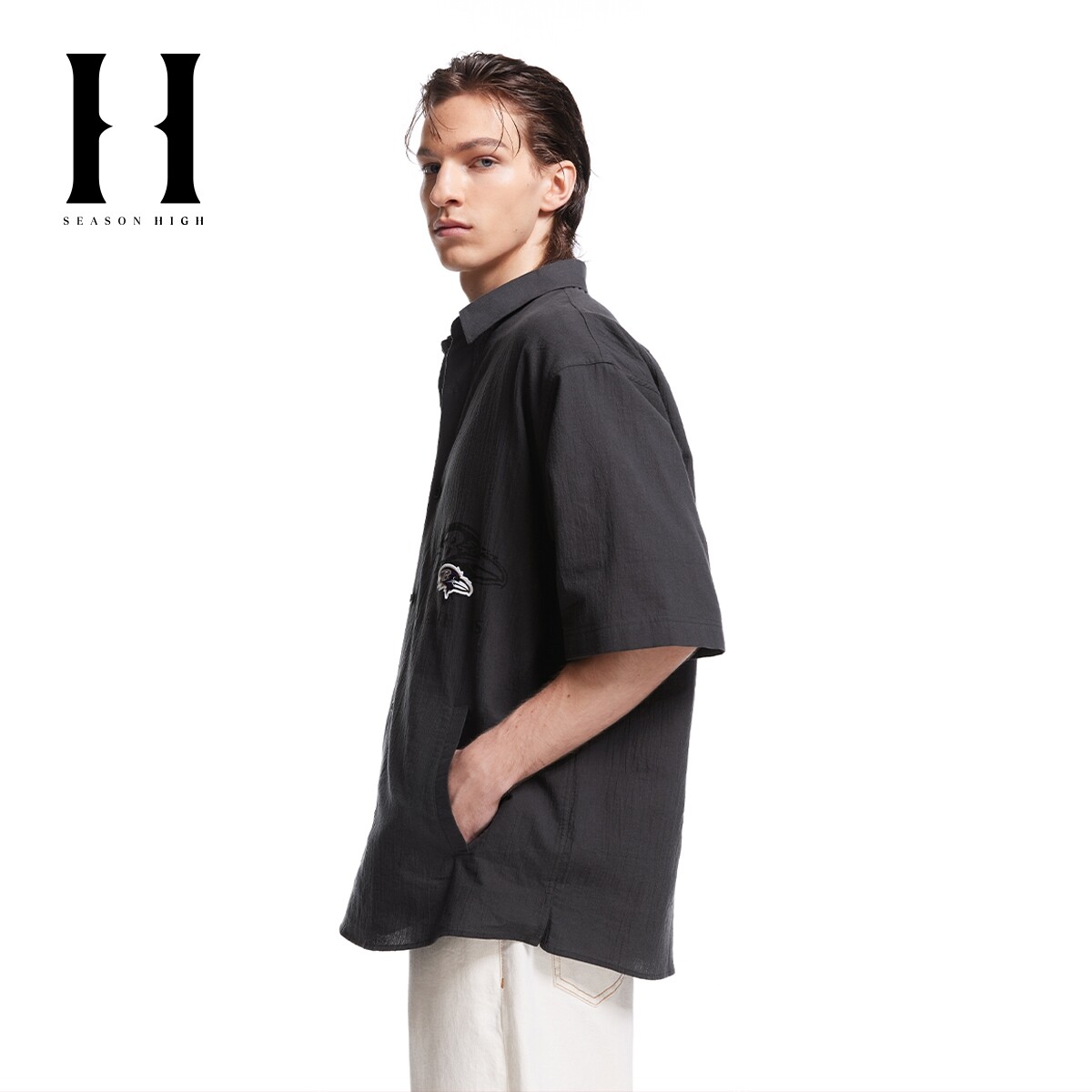 SEASONHIGH x NFL联名乌鸦队男秋季短袖衬衫纯色翻领刺绣上衣男装