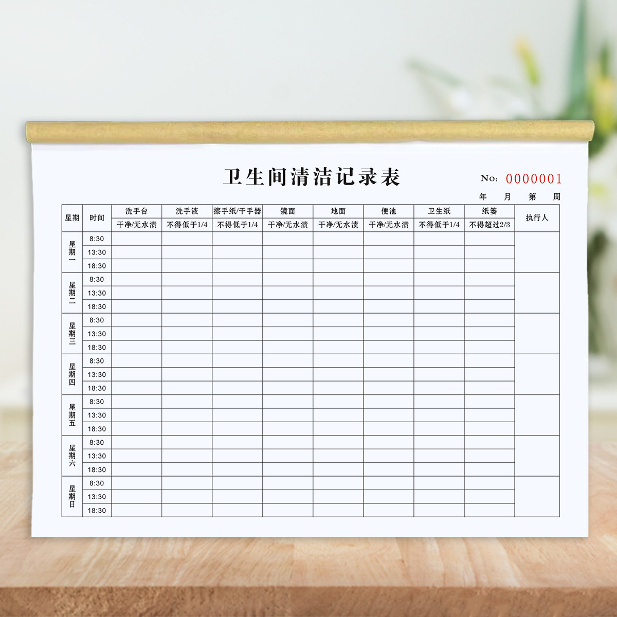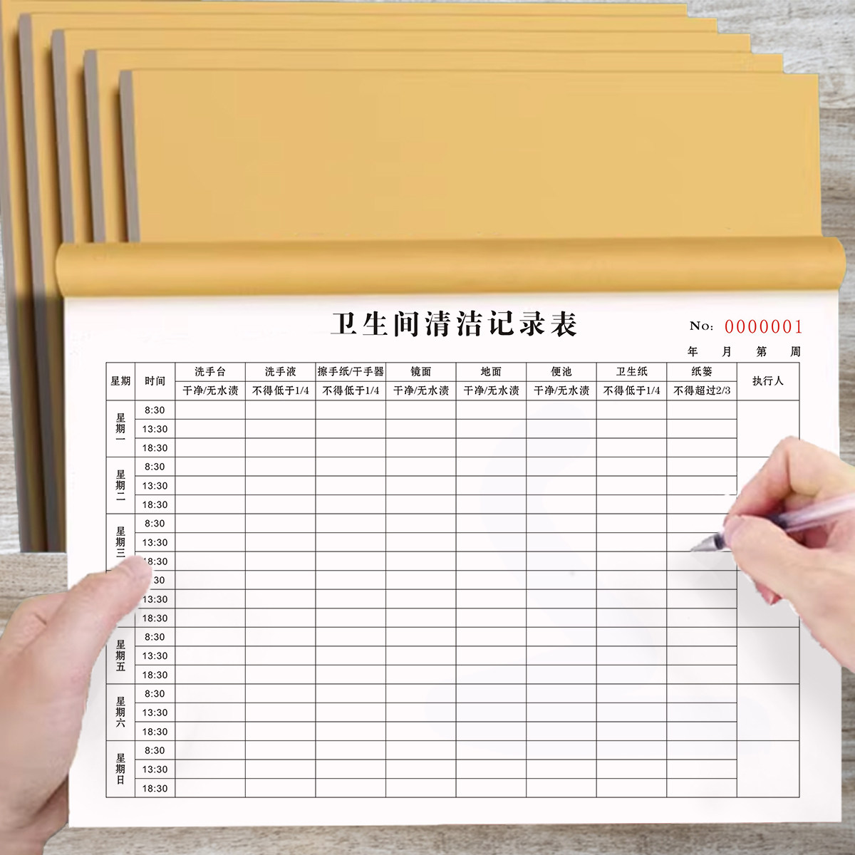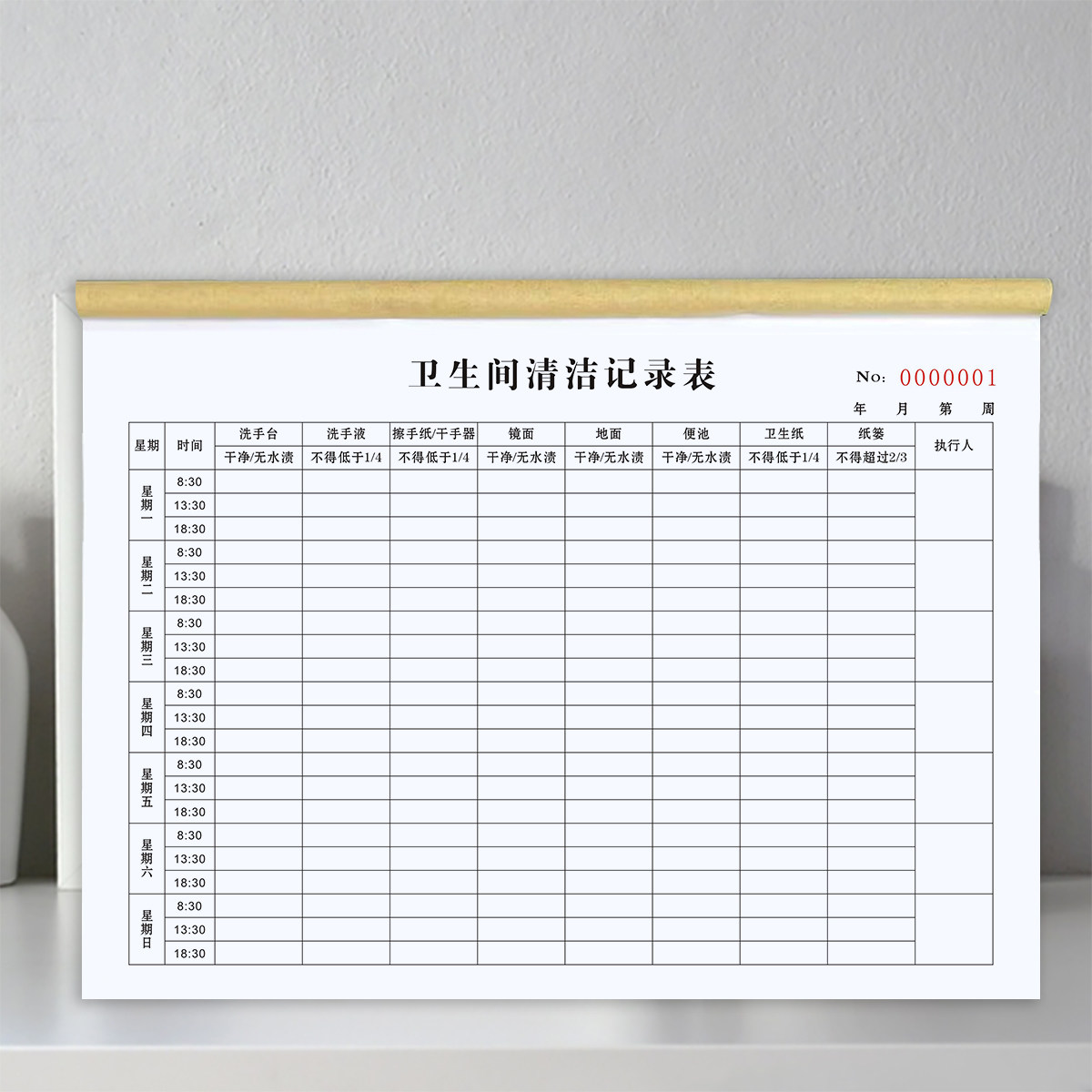 一本装通用商场酒店公共区卫生间清洁记录表家政保洁合同书验收单酒店餐厅药店场所环卫清洁区域情况登记簿