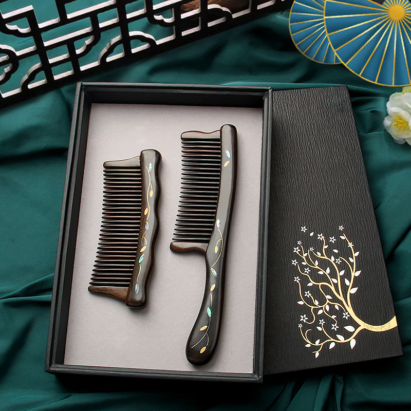 沉贵宝木梳礼盒漆艺彩绘节日女士长发专用送女友妈妈养发梳子礼物