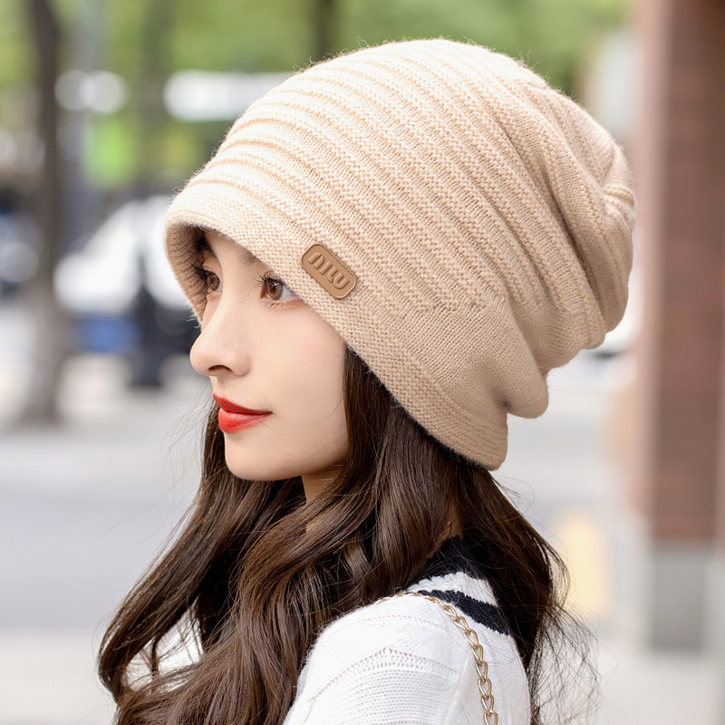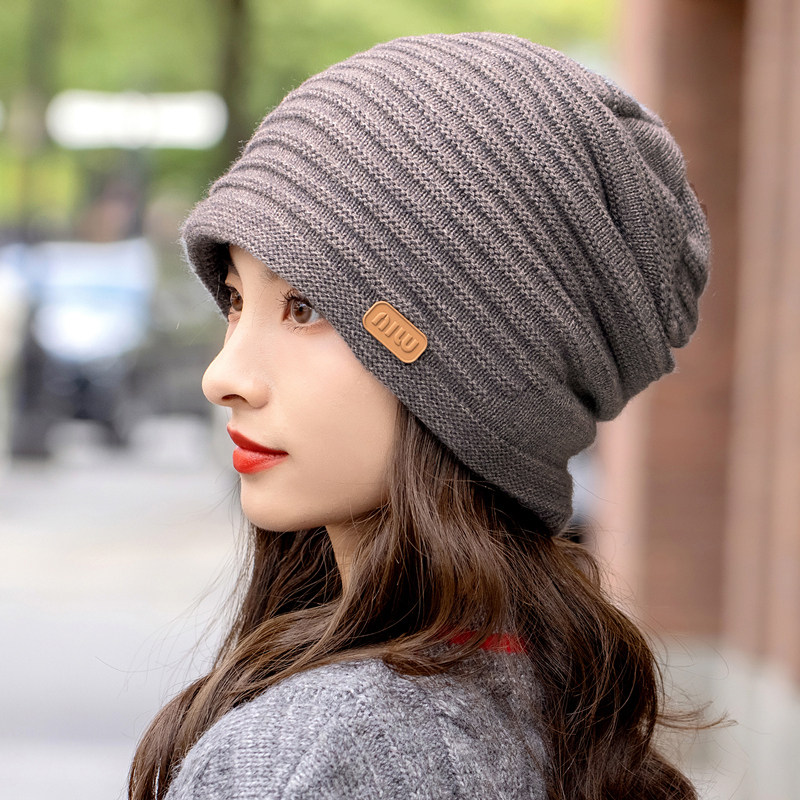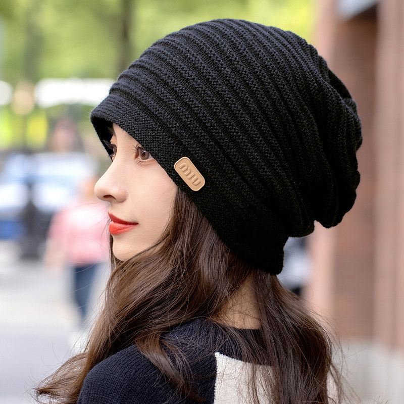 帽子女秋冬休闲简约加绒加厚毛线帽情侣帽户外保暖护耳帽针织帽
