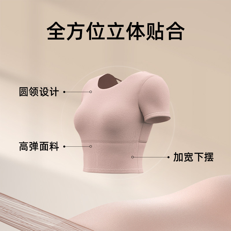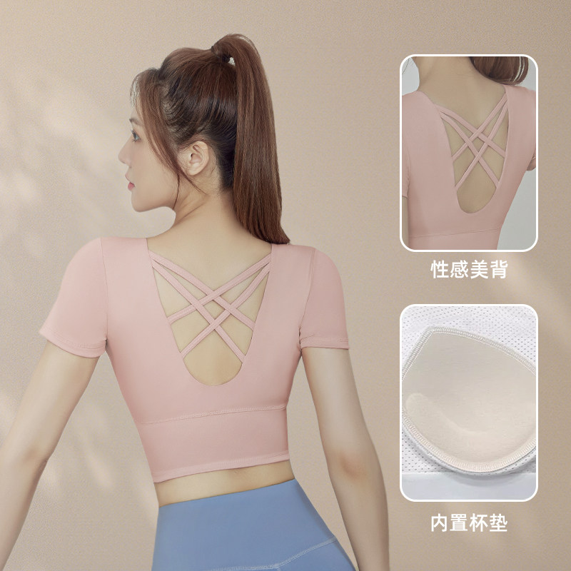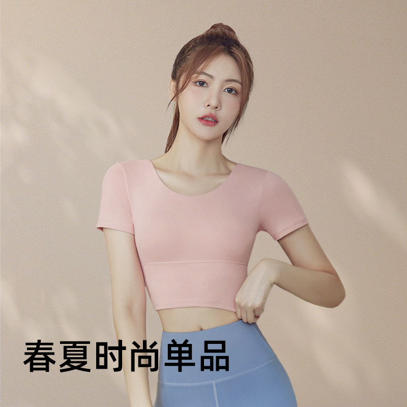 带胸垫瑜伽服女普拉提训练健身上衣2025新款运动跑步套装短袖T恤