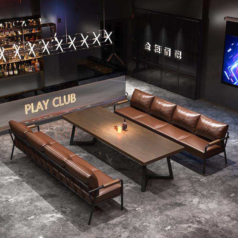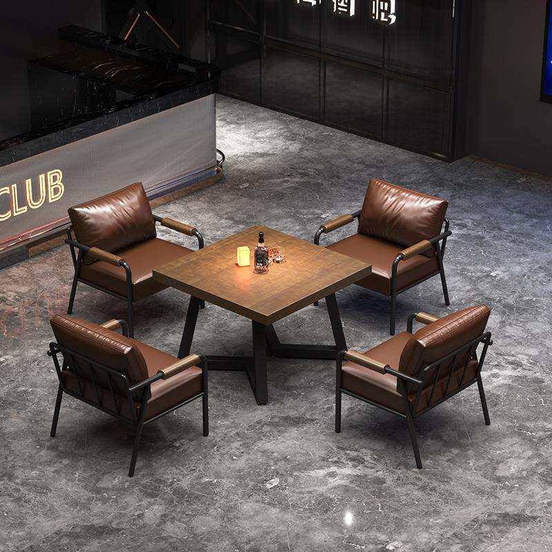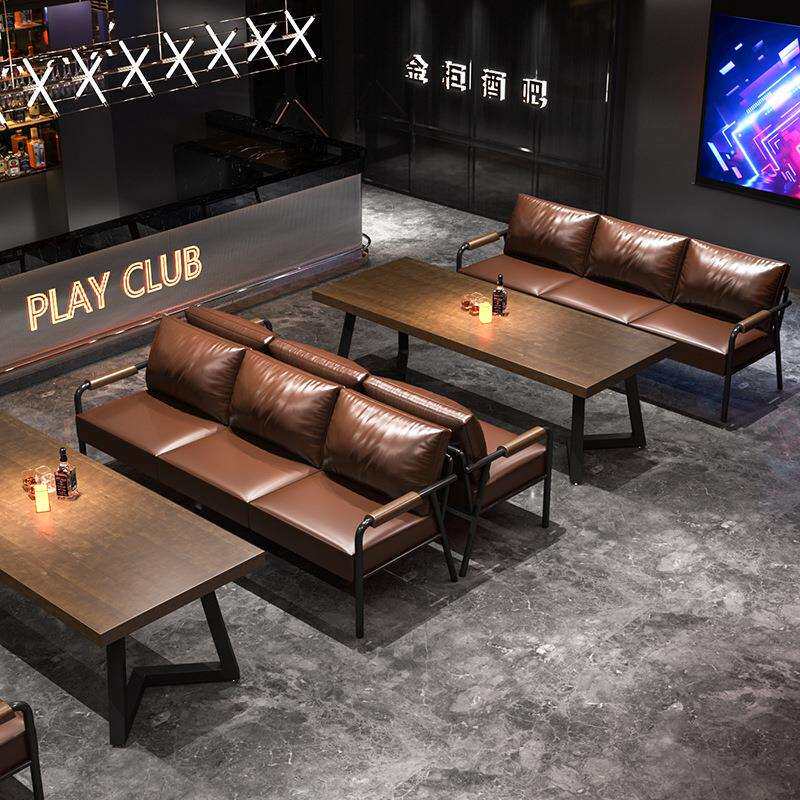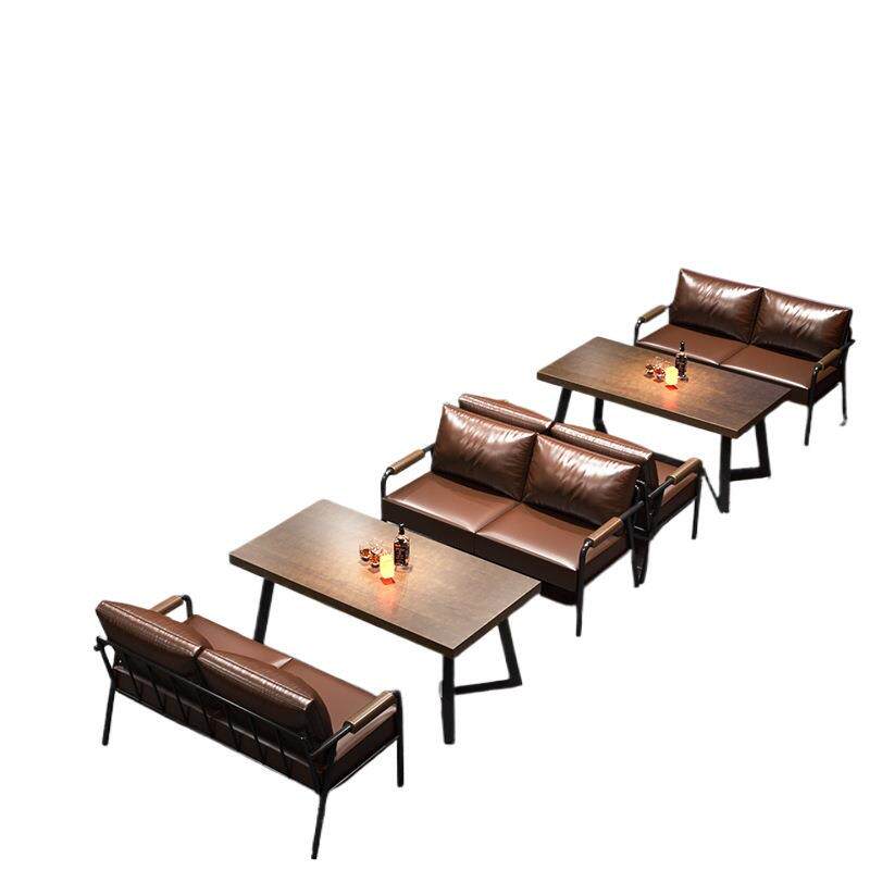 公寓卡座咖啡厅复古实木工业风铁艺沙发椅休闲酒吧烧烤店桌椅组合