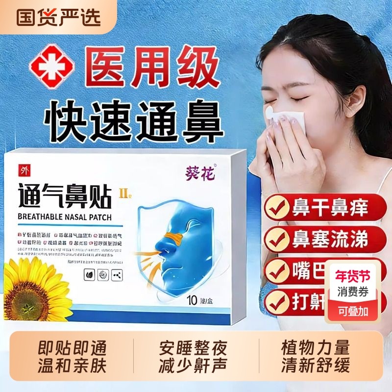 葵花通气鼻贴睡觉打呼止鼾贴鼻塞通鼻神器鼻炎鼻子打鼾呼吸年货节