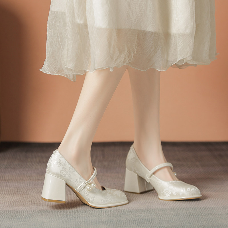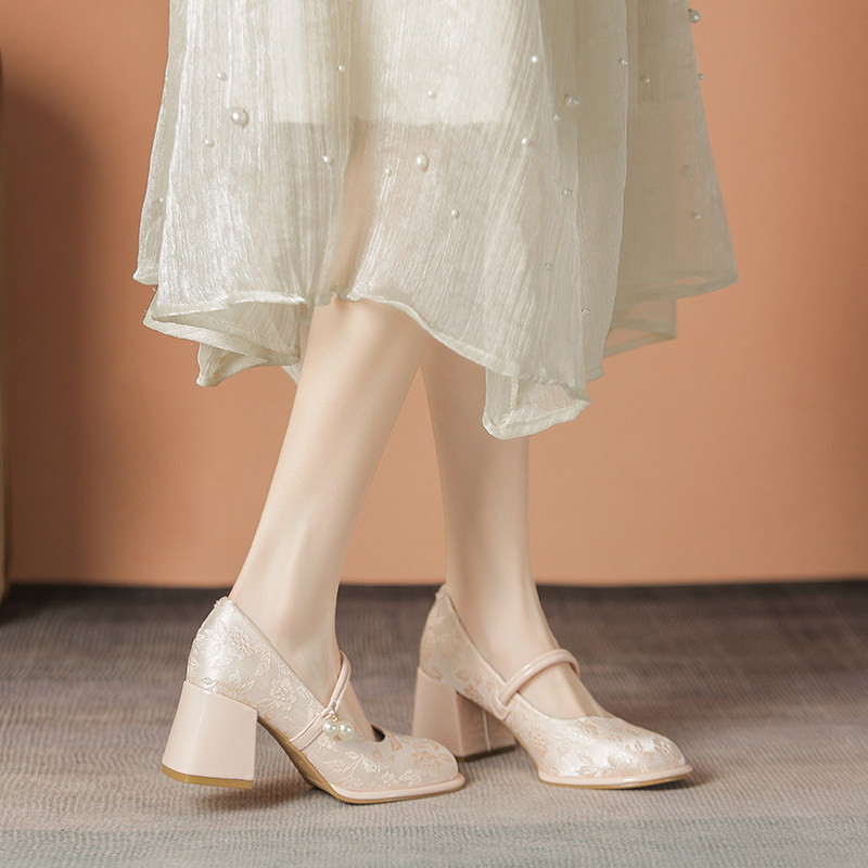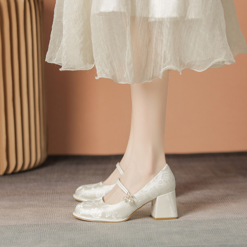 玛丽珍女鞋配裙子旗袍鞋新中式国风鞋子妈妈款缎面汉服法式高跟鞋