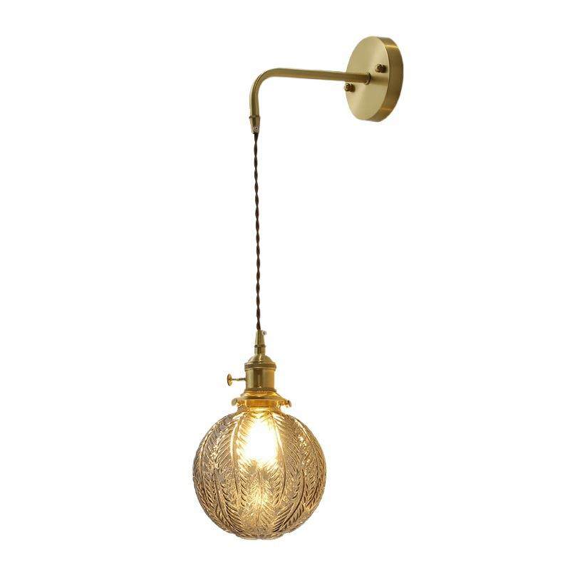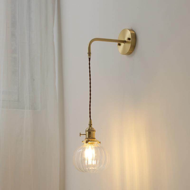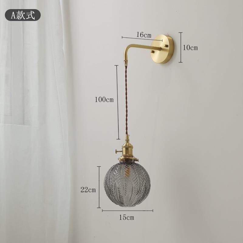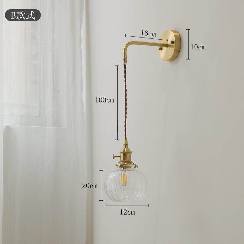 日式全铜客厅灯北欧简约客厅卧室床头书房民宿拉线开关玻璃壁灯