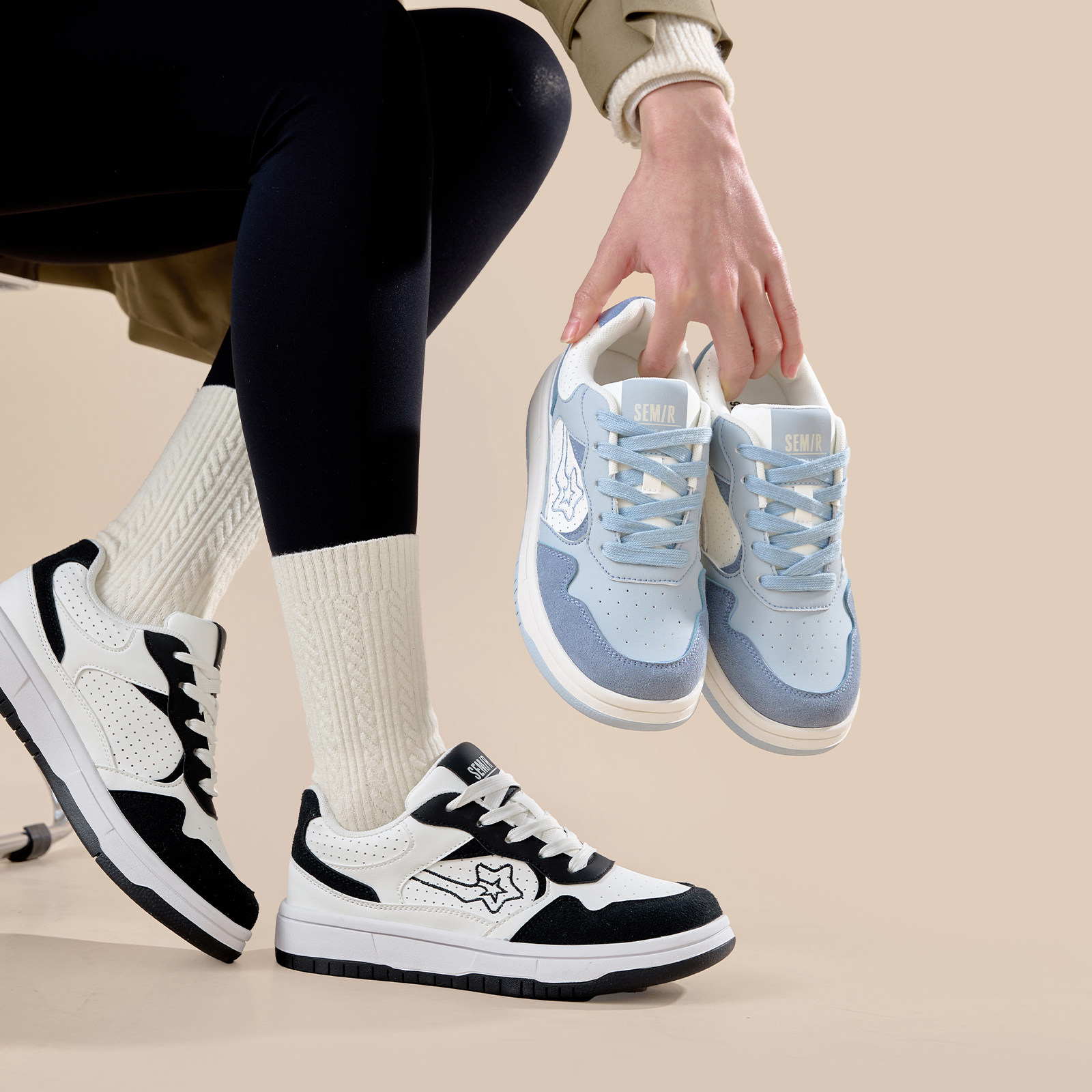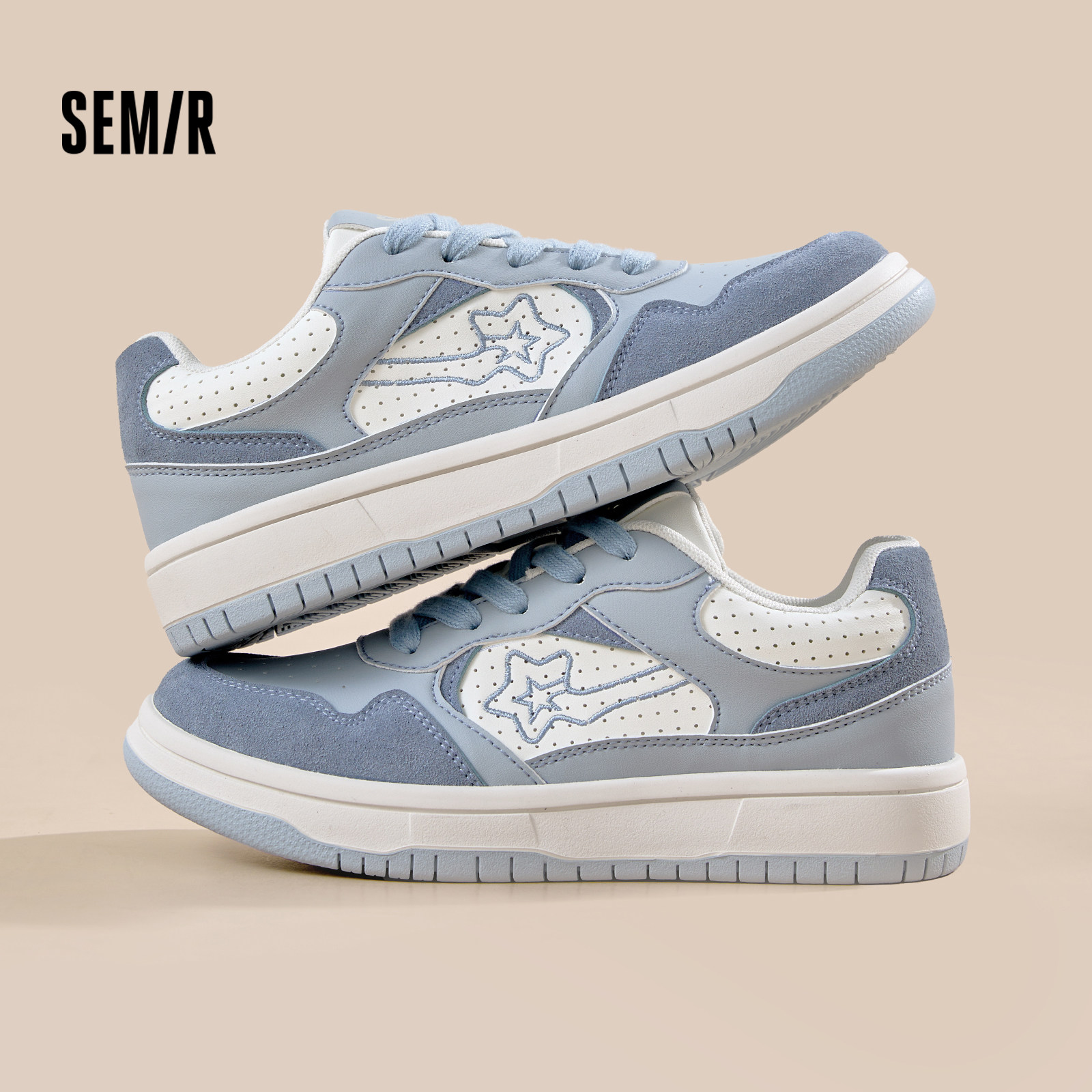 Semir女鞋板鞋2026春季新款厚底小白鞋女款蓝色星星鞋休闲运动鞋