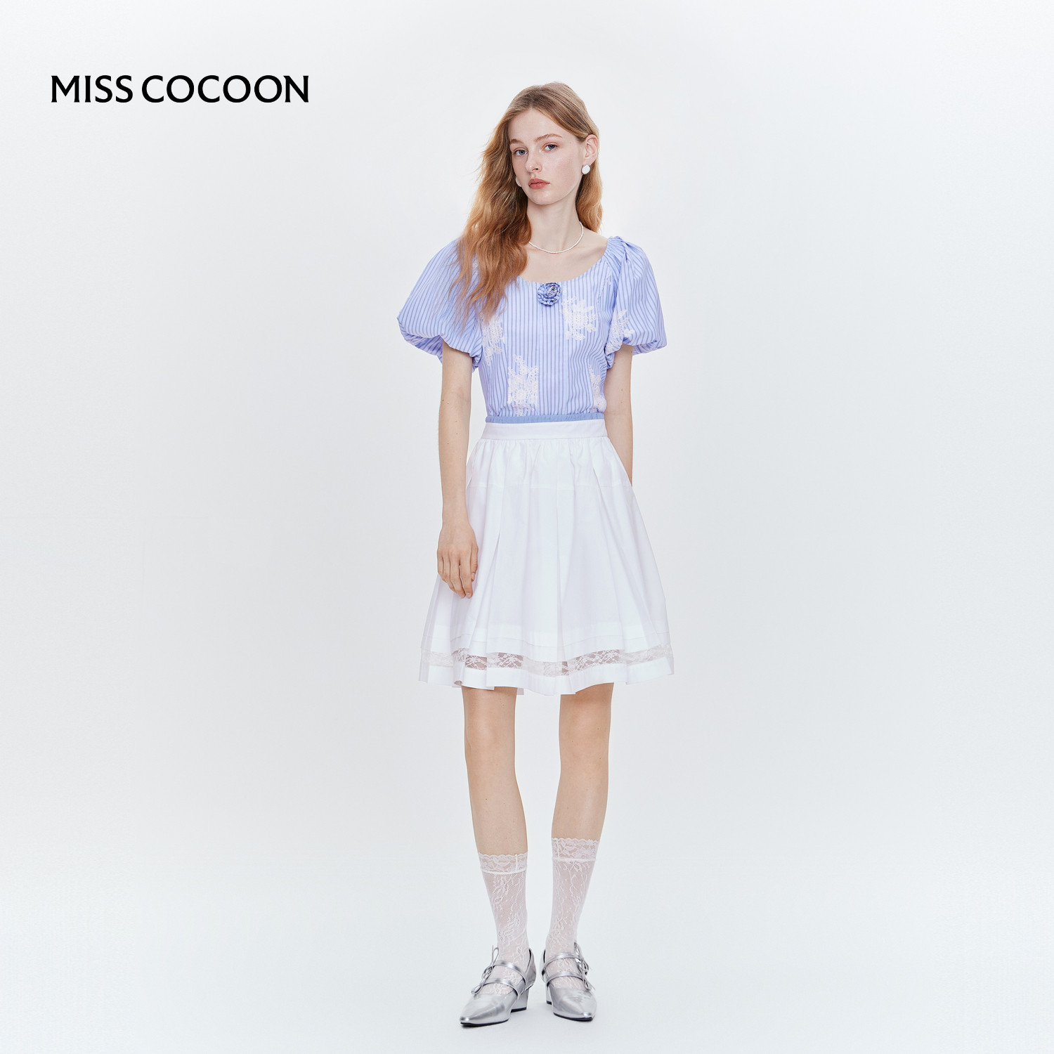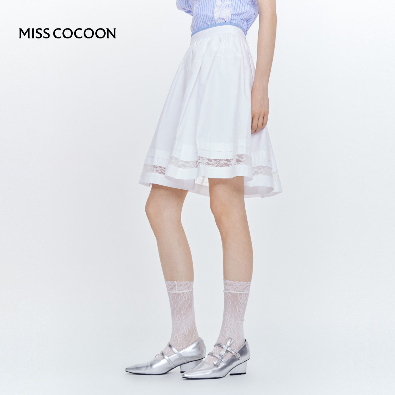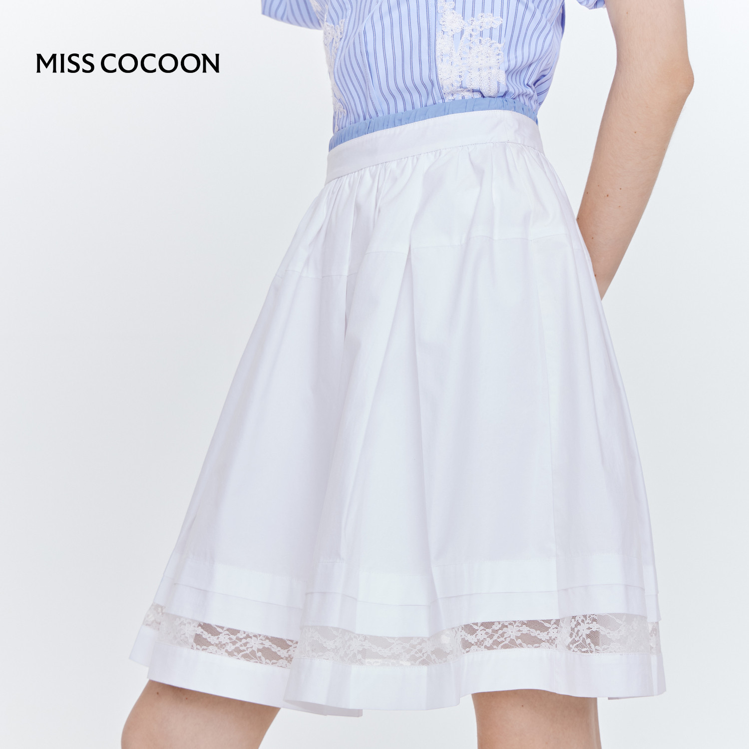 MISS COCOON可可尼高智穿搭百褶裙2025秋季新款纯棉白色a字半身裙