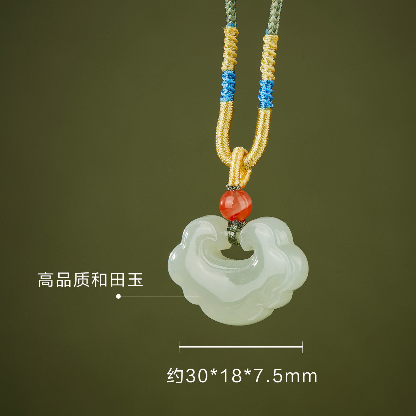 七彩云南天然和田玉吊坠如意锁项链玉石平安锁玉坠青白玉挂件礼物