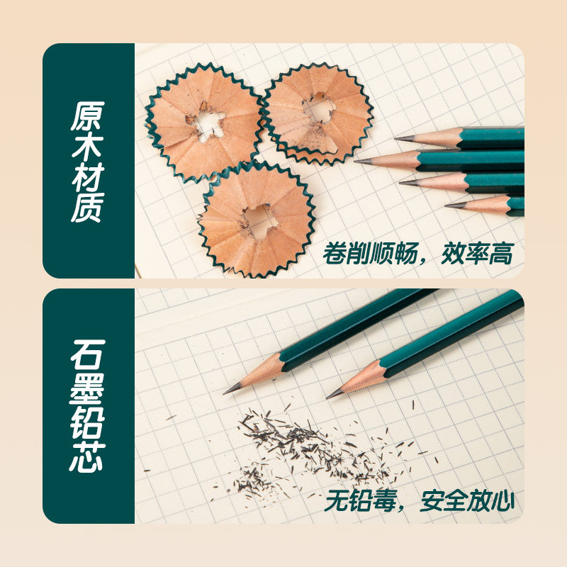 晨光黑木铅笔高颜值小绿杆小学生铅笔高端黑木练字无铅毒不易断