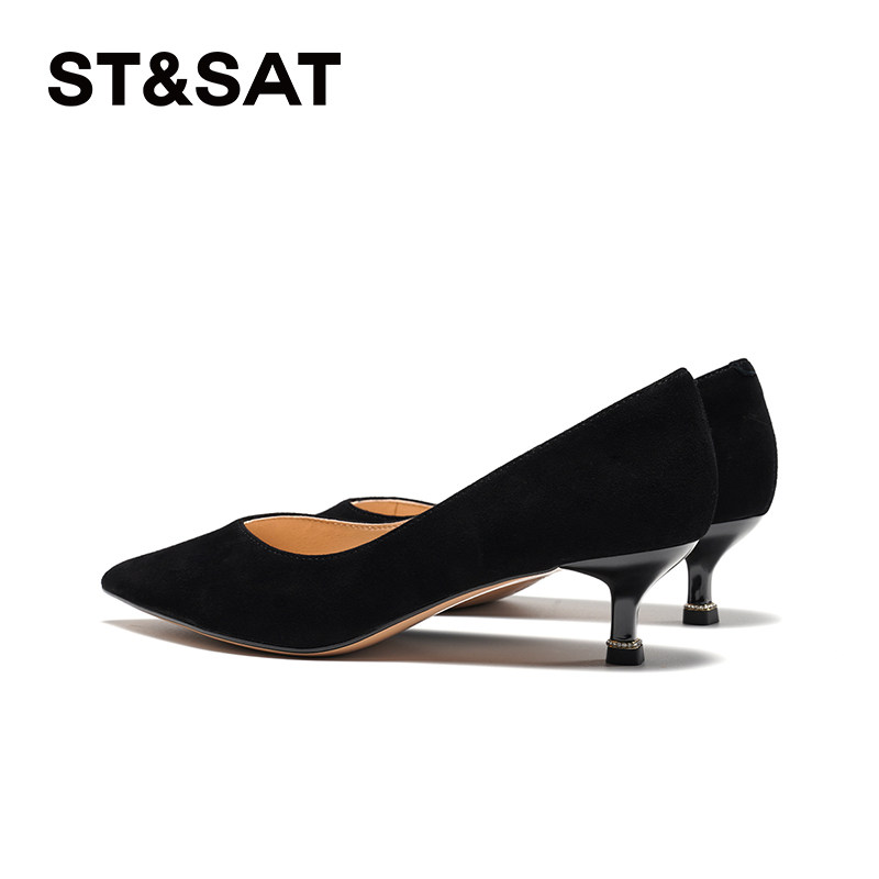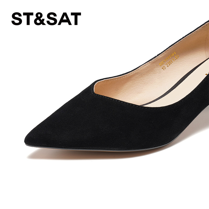 星期六浅口单鞋春季新款优雅尖头中跟通勤黑色单鞋SSC1111141