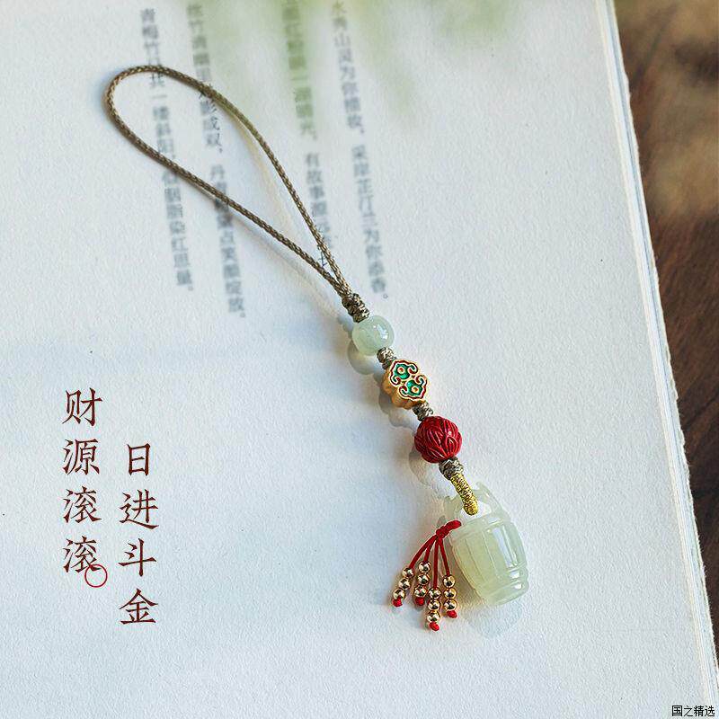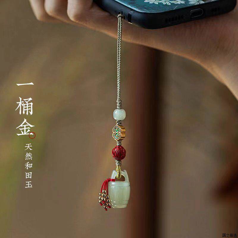 天然和田玉一桶金手机挂绳挂饰挂坠古风手机饰品包包挂件