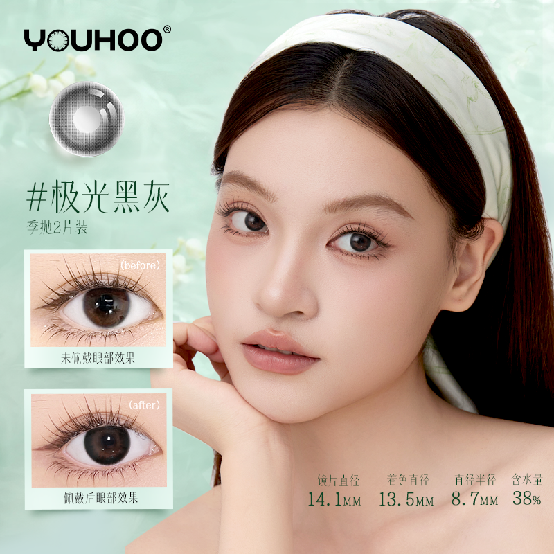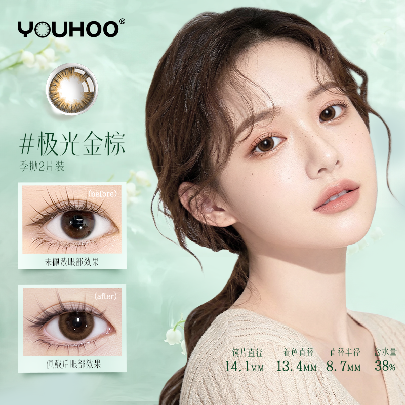 YOUHOO美瞳季抛极光金棕自然混血彩色隐形眼镜近视大小直径2片装