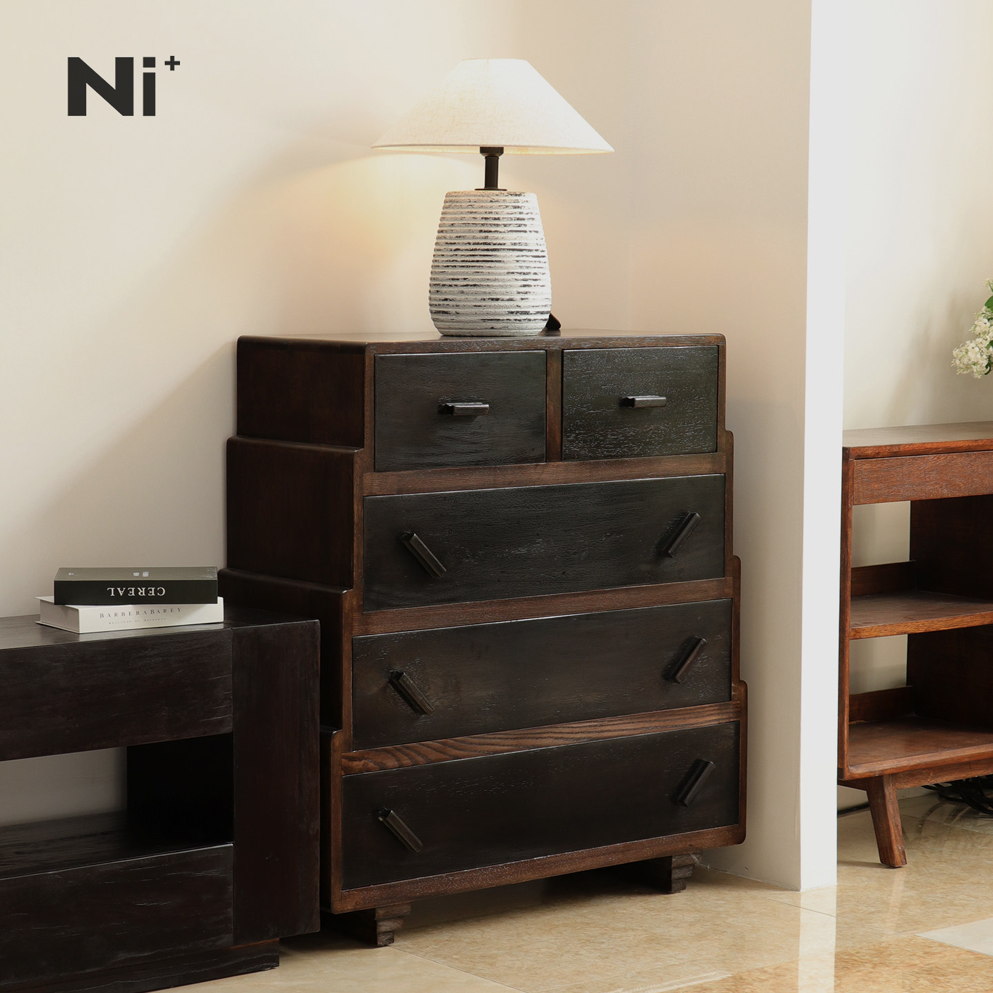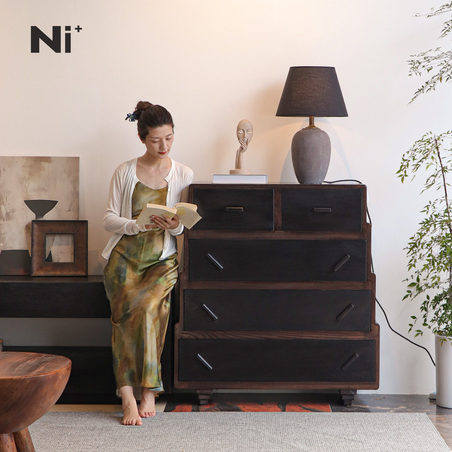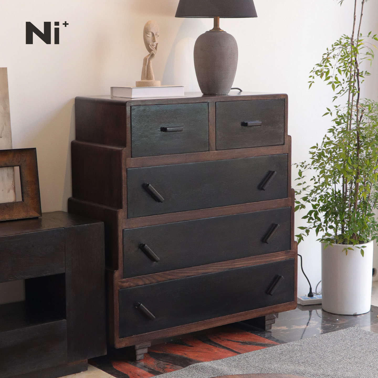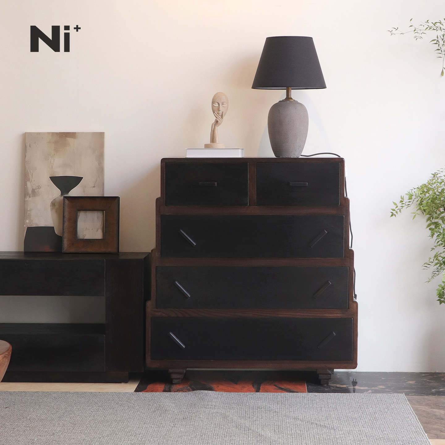 Ni尼家老钱风复古五斗柜客厅中古风收纳柜电视边柜卧室黑色床尾柜