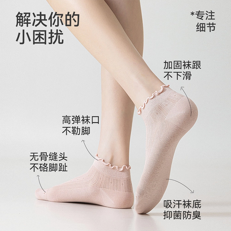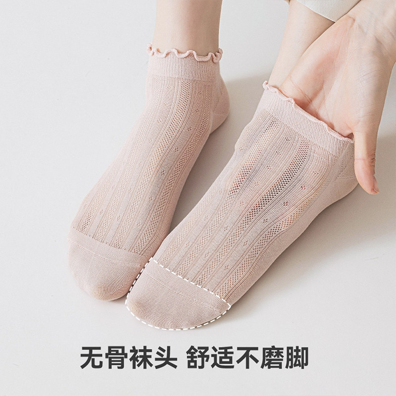袜子女夏季薄款纯棉短袜无骨木耳花边夏天网眼透气防臭短筒袜吸汗