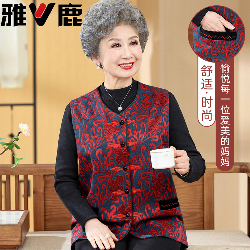 雅鹿奶奶春装坎肩马夹中老年人洋气背心女妈妈马甲春秋外套老太太