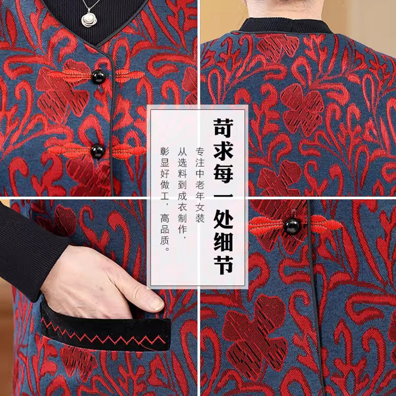 2026新款假两件针织衫妈妈装秋冬加绒加厚毛衣中老年女装保暖上衣