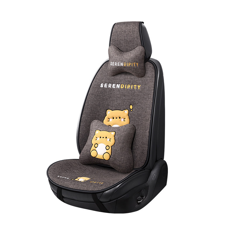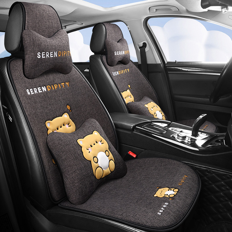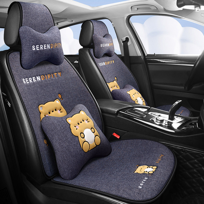 汽车坐垫半包亚麻四季通用座椅垫可爱透气车垫网红卡通布艺座垫女