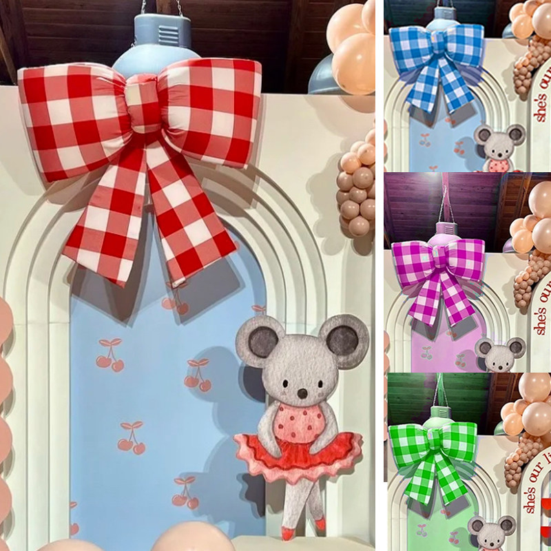 格子蝴蝶结 布艺背景布打卡派对生日订婚满月宴店铺网红节日装饰