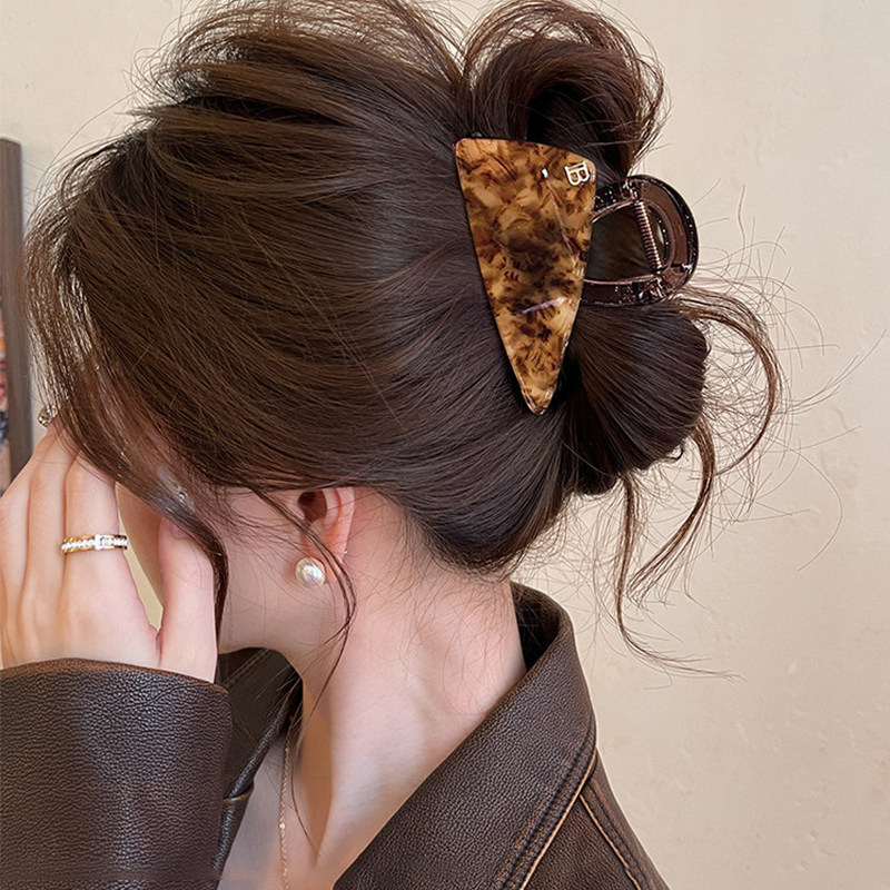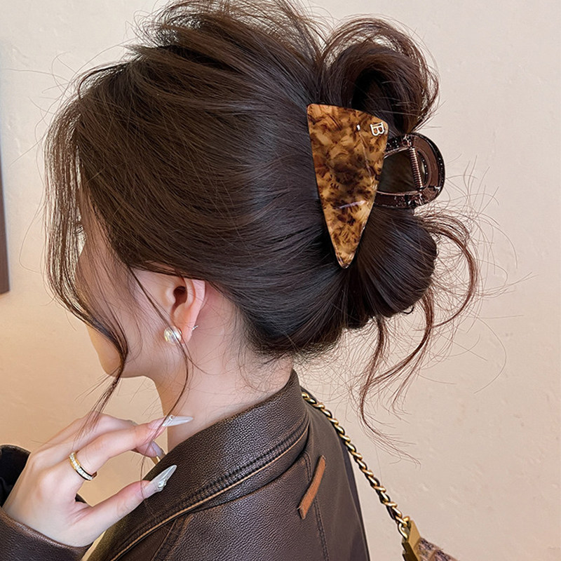 三角豹纹醋酸头发抓夹女鲨鱼夹2026新款盘发夹高级感独特漂亮发饰