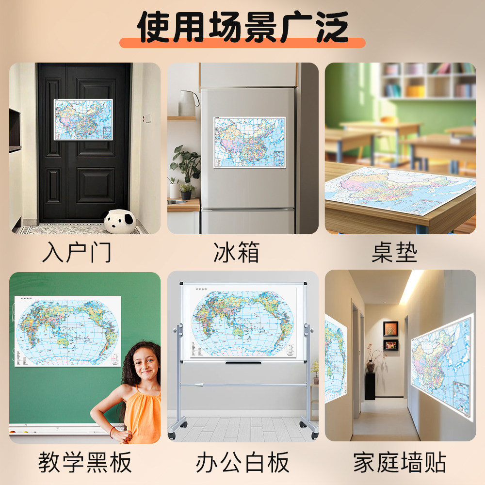 易飞磁吸地图冰箱贴新版中国地图世界地图学生挂图教学用品