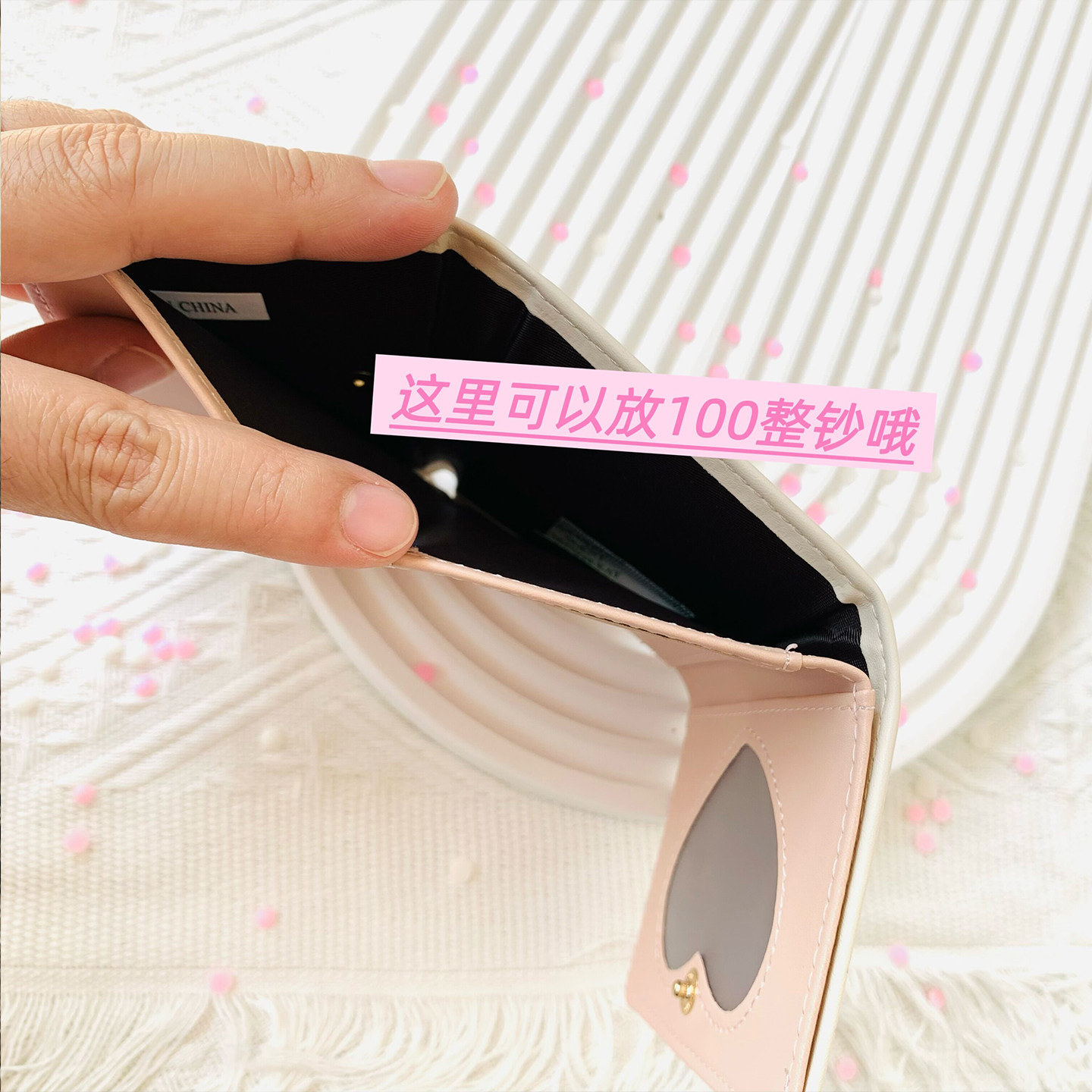 日系可爱零钱包简约华夫格收纳包女便携手腕包花朵mini小巧手提包