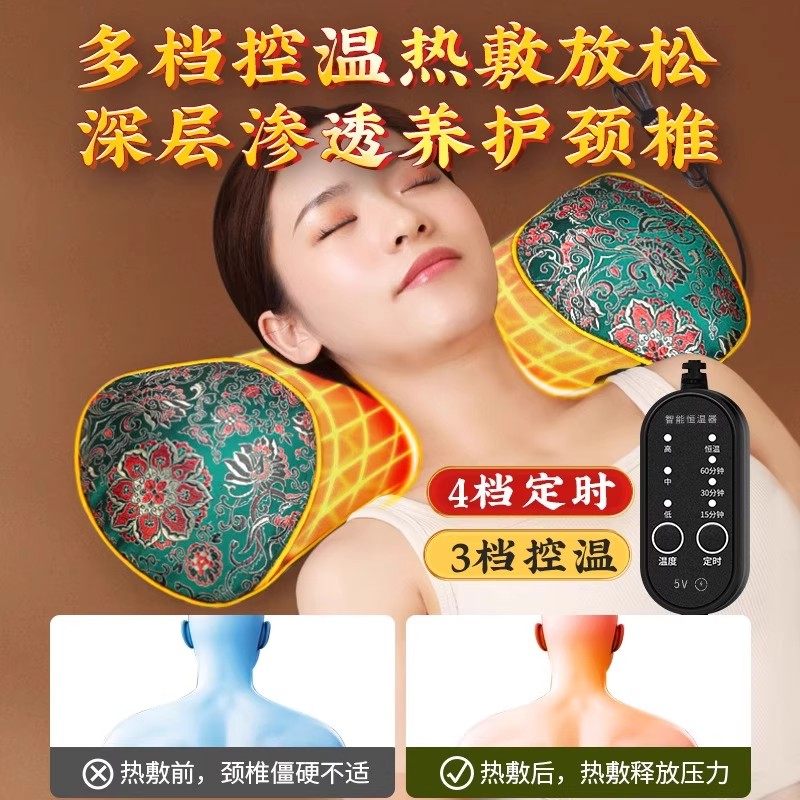 电加热艾草颈椎专用枕头护颈椎睡眠艾灸热敷艾叶发热电热理疗肩颈