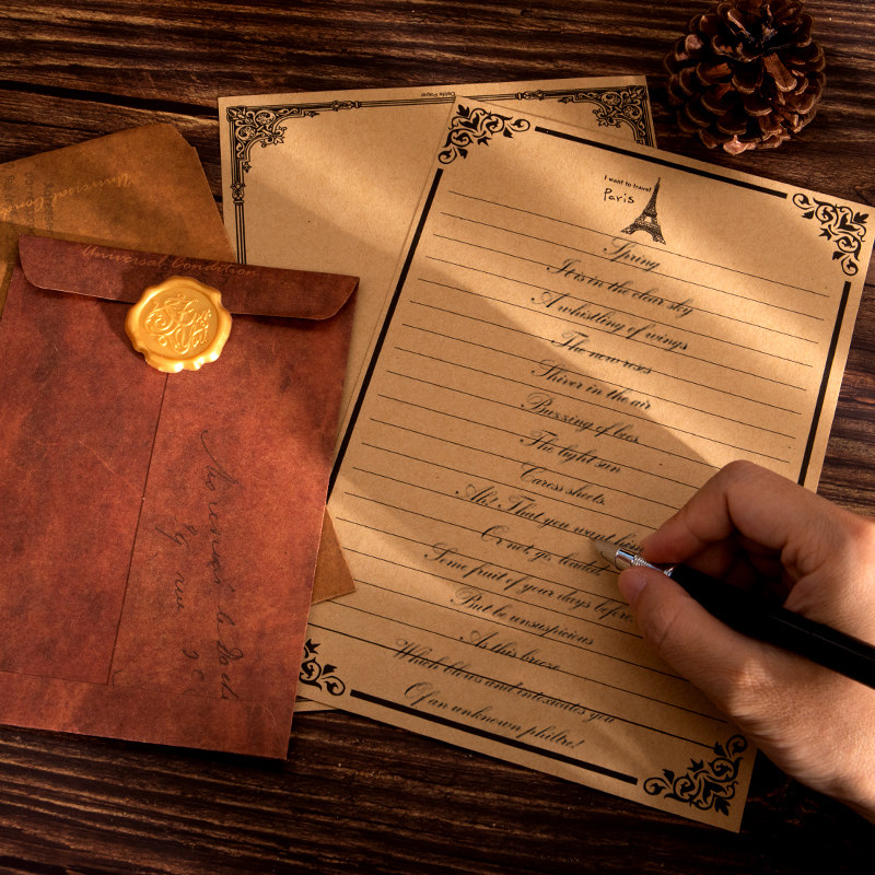 复古牛皮信封信纸套装高级感简约空白信纸加信封生日教师节情书浪漫表白创意信件封口高颜值加厚精致信封贺卡