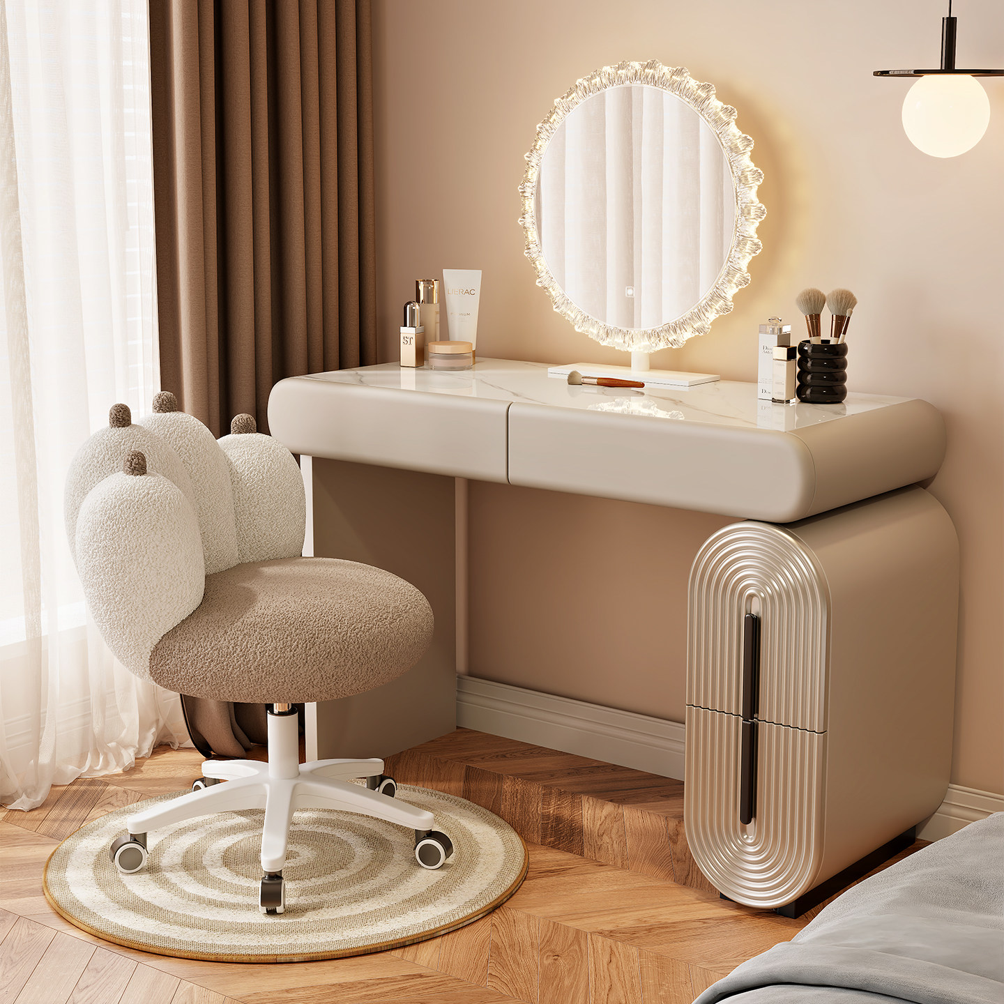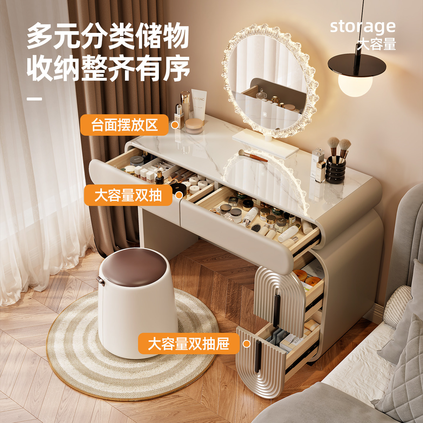中古风实木梳妆台收纳斗柜一体卧室小型化妆桌转角现代简约梳妆台